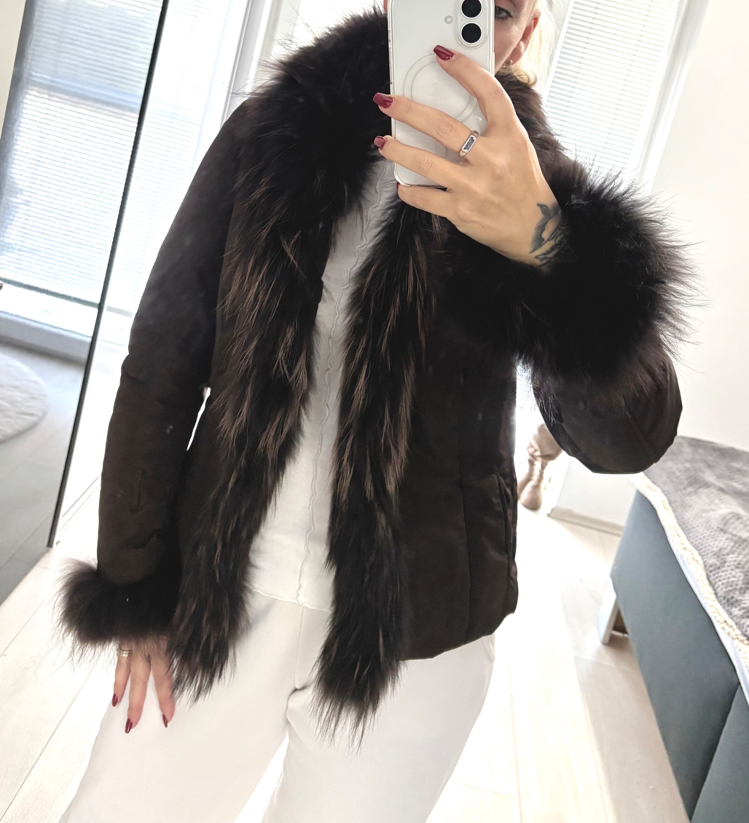 Dámska zimná bunda zapínanie na háčiky chýbajú remienky na rukávoch inak top stav pravá kožušina