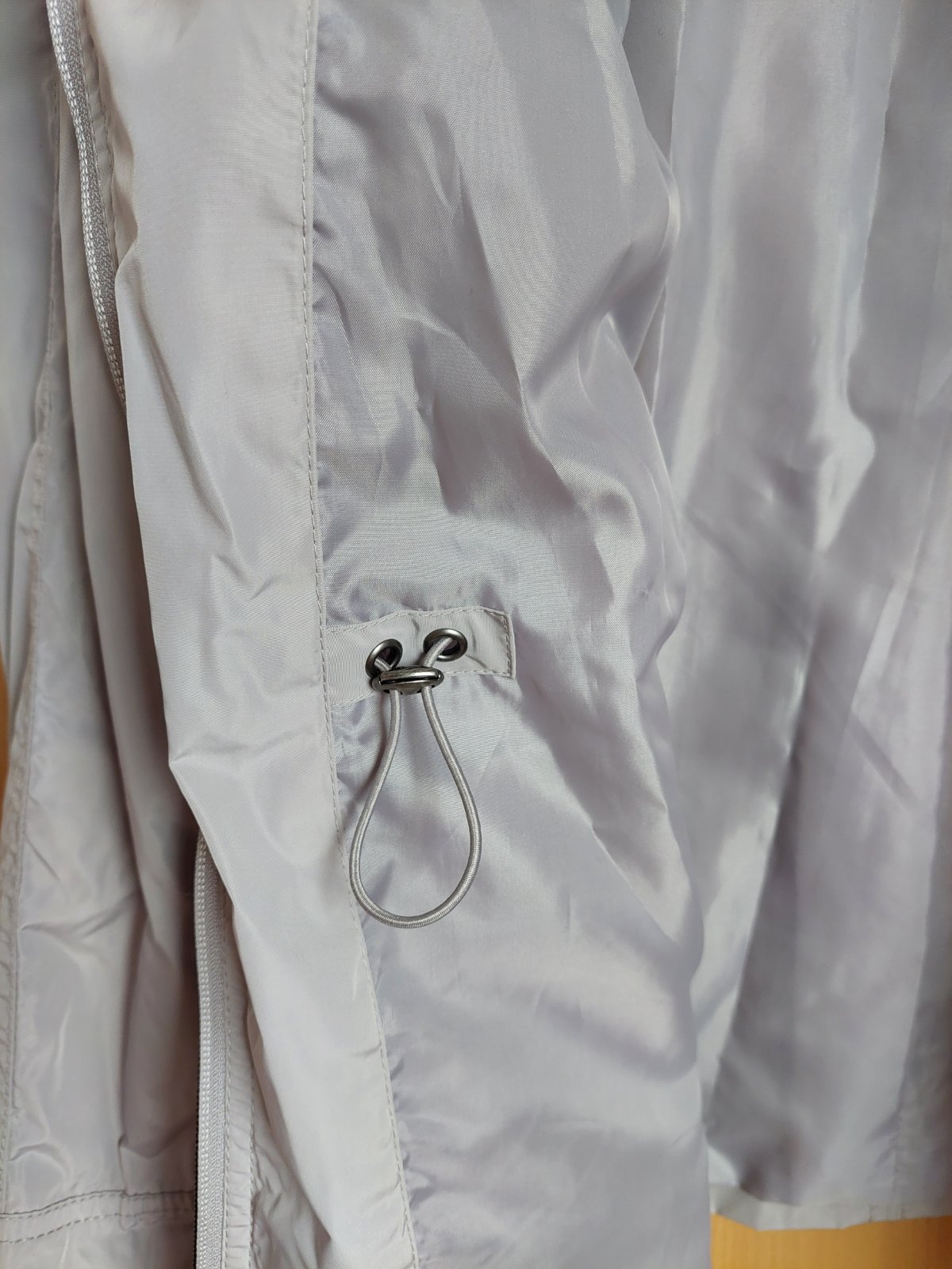 Damska prechodná vetrovka/bunda,bezovozlatej farby,zapinanie na zips.89%polyester,11=nylon.super stav,ako nova. Rozmery: vel.44/46,UK18,cez prsia 2x63cm,cez boky 2x66cm,dl rukava od ramena 66c...