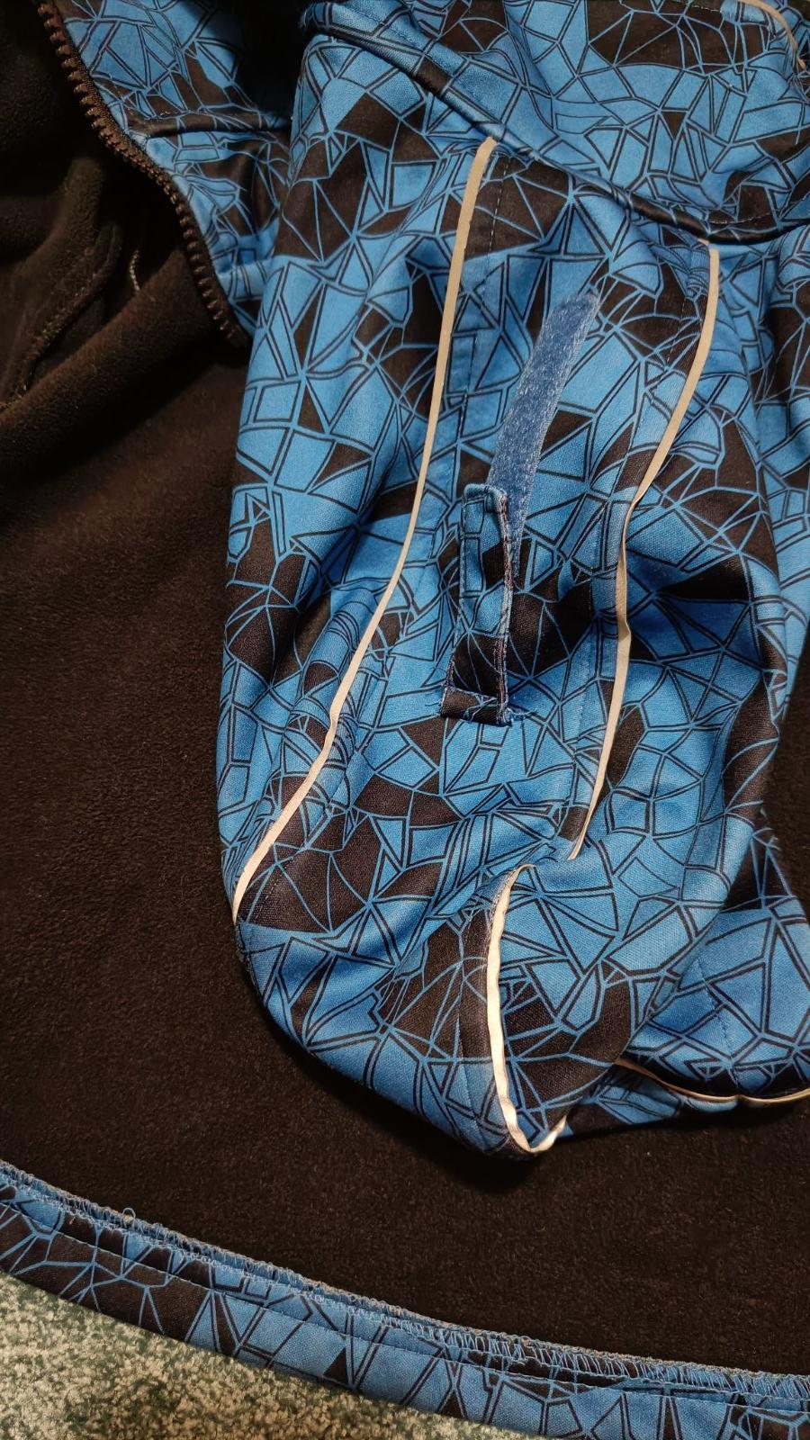 Používaná predstava bunda, softshel, veľkosť 122-128. Bežné známky používania, bez funkčného poškodenia, chybičky nafotené ( regulácia na rukávoch pomocou suchého zipsu trucu vyšúchala miesto pred zipsom). Vrecká na zips. Kapucňa neodnímateľná. Predĺžená. Reflexné prvky. Obrázky medveďa.