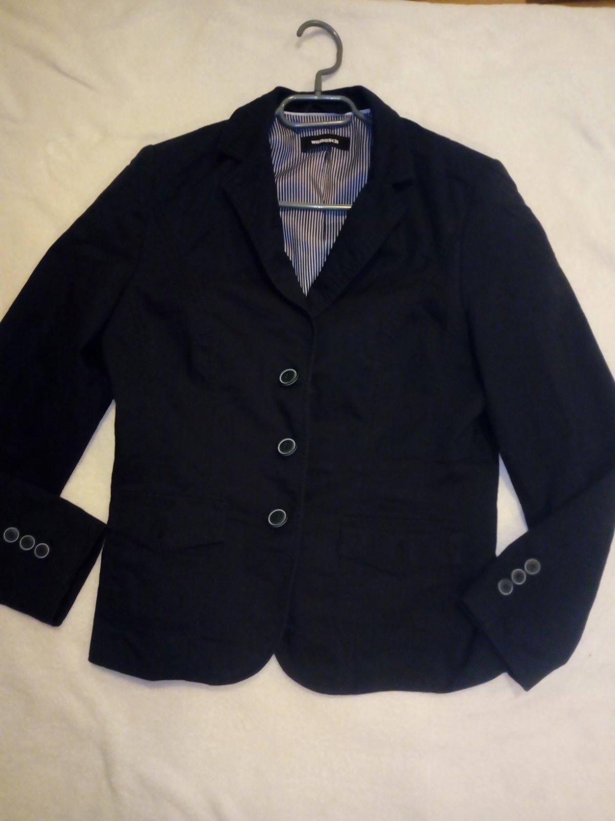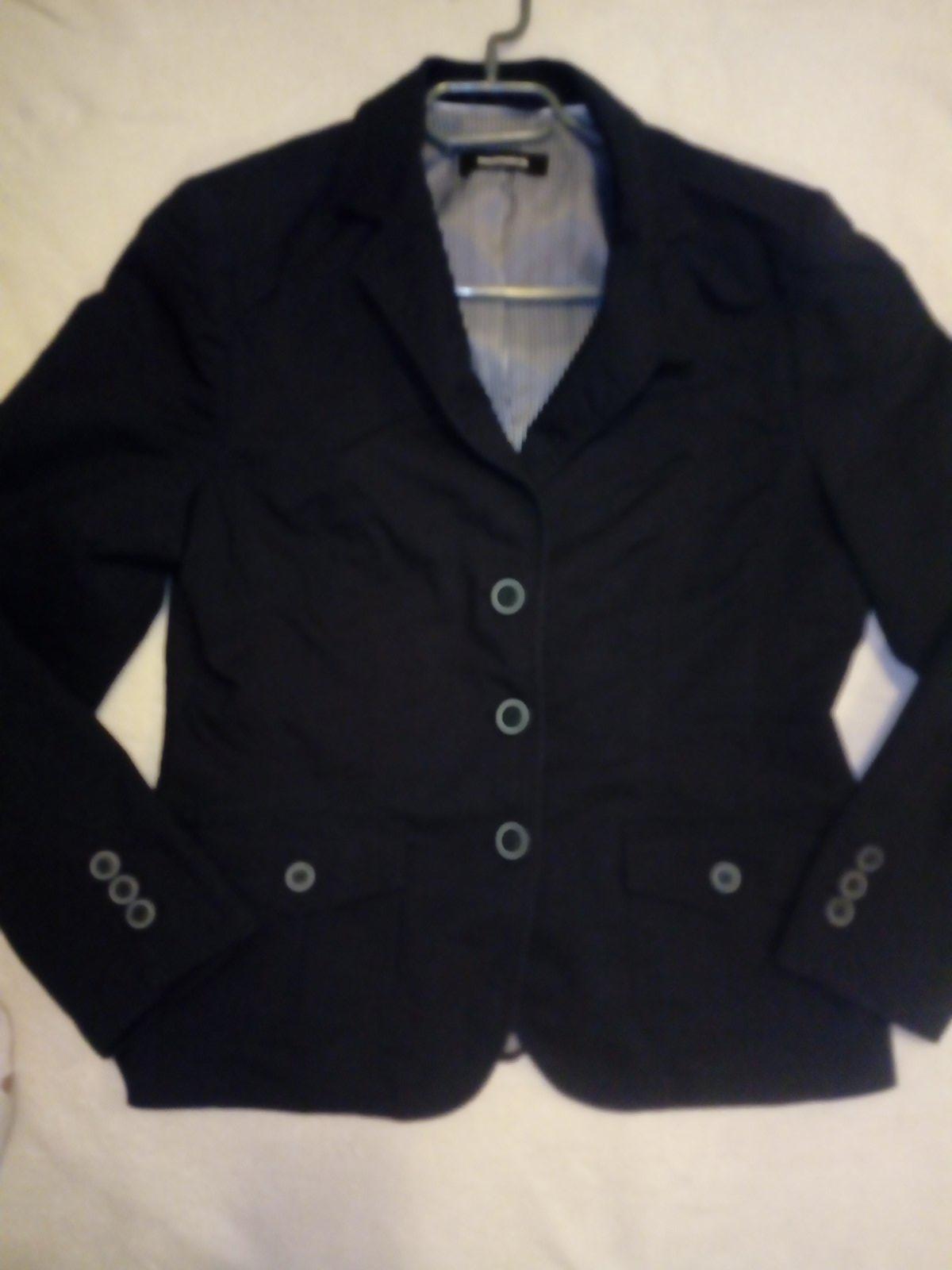 Predávam tmavomodré sako, tristvrtový rukáv. Málo nosené. Píšu veľkosť 36 ale sadne aj na veľkosť M.