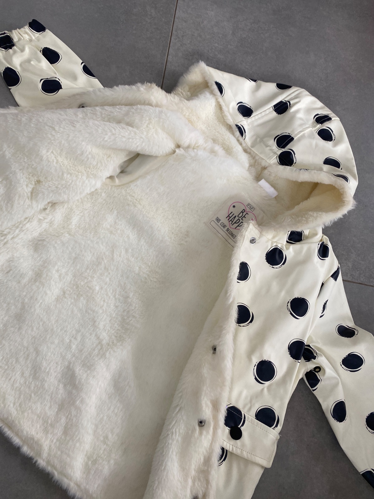 Predám jarnú bundičku kremovej farby s bodkami v top stave veľkosť 92 na 18-24 mesiacov z vonkajšej strany taky pogumovaný materiál ideálny do dažďa, z vnutornej strany príjemne zatrplená jemnučkou...