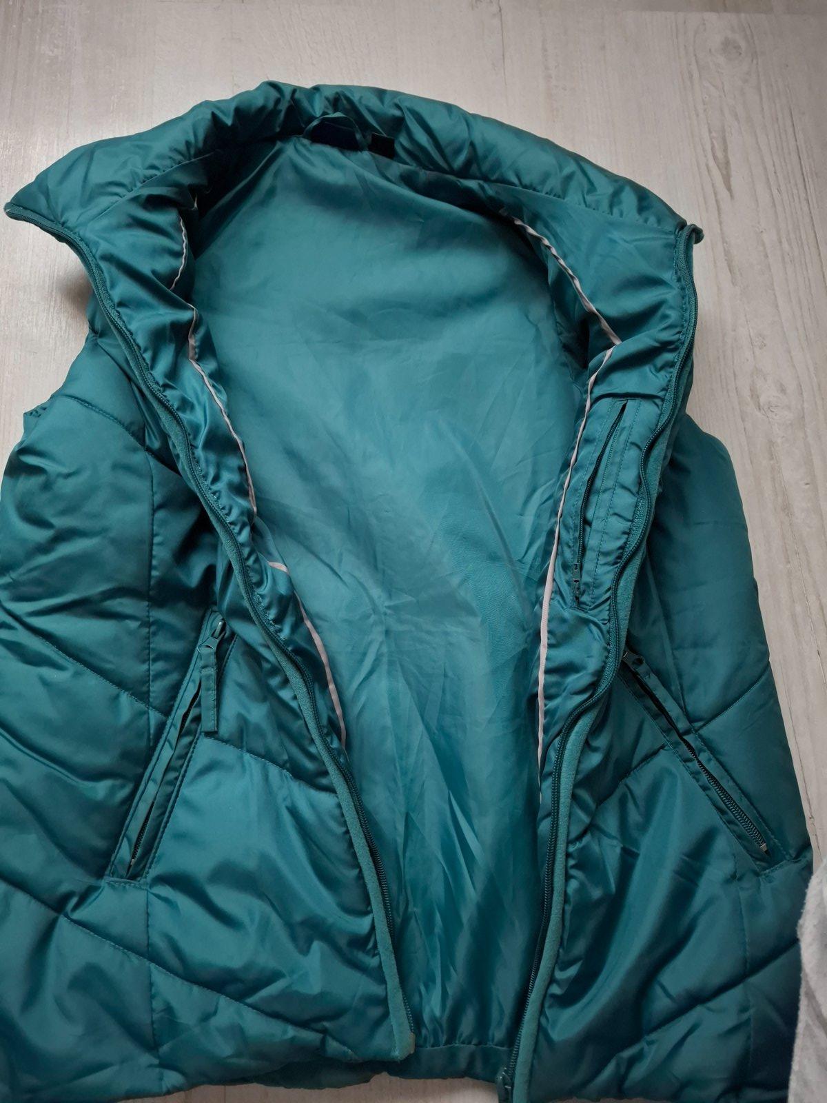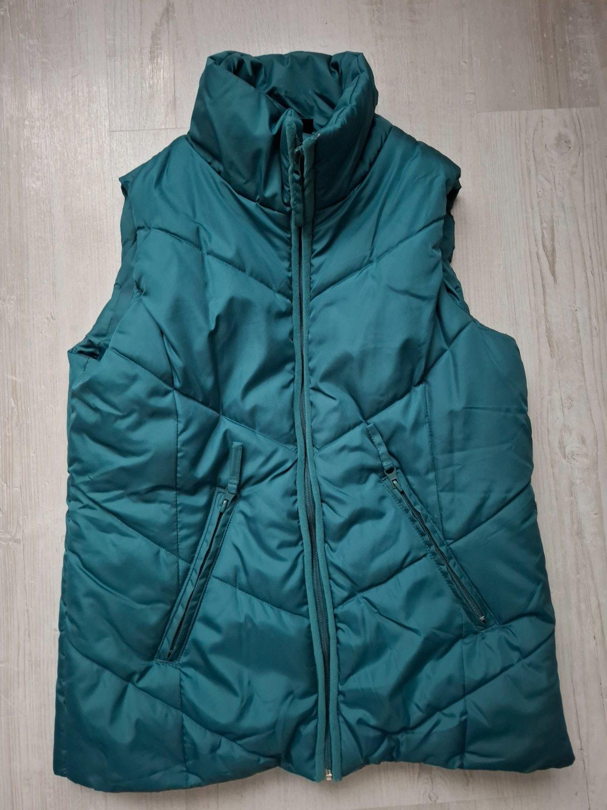 Značka esmara. Teplejšia vesta, nosena minimálne. Má chybičku, pri zapnutom zipse mala dierka, viď foto. Šikovná žienka zašije 🙂