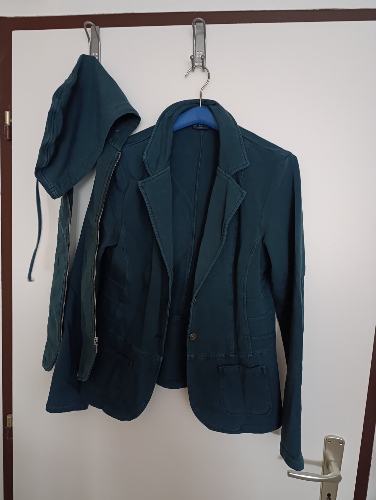 Predám veľmi pekné máličko nosené Dámské zelené sako.Je mäkučké a vyrobená je z bavlny a elastanu. Dĺžka saká je 58 cm a dĺžka rukávu je 60 cm.