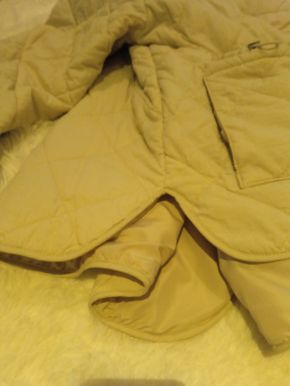 Krásna s jemnučkým vzorom, podšitá jemnou kožušinkou, Top stav D 72 cm S 49-47-52 cm x2 R 64 cm plus 9 cm rameno