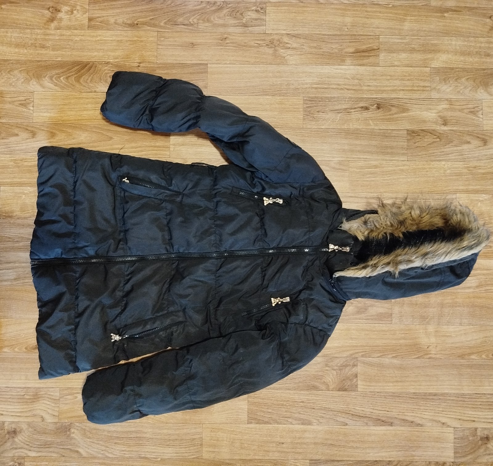 Bunda nosená, bez poškodenia, jedine chýba macko na pravom vrecku
