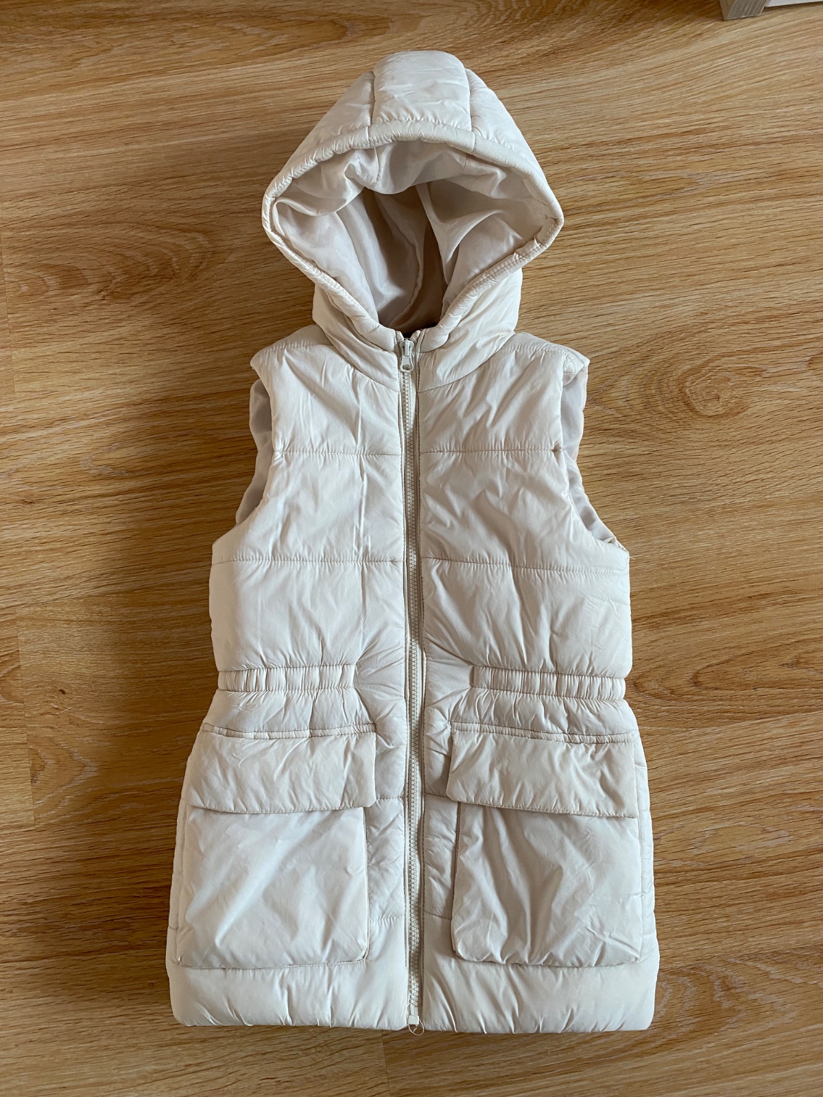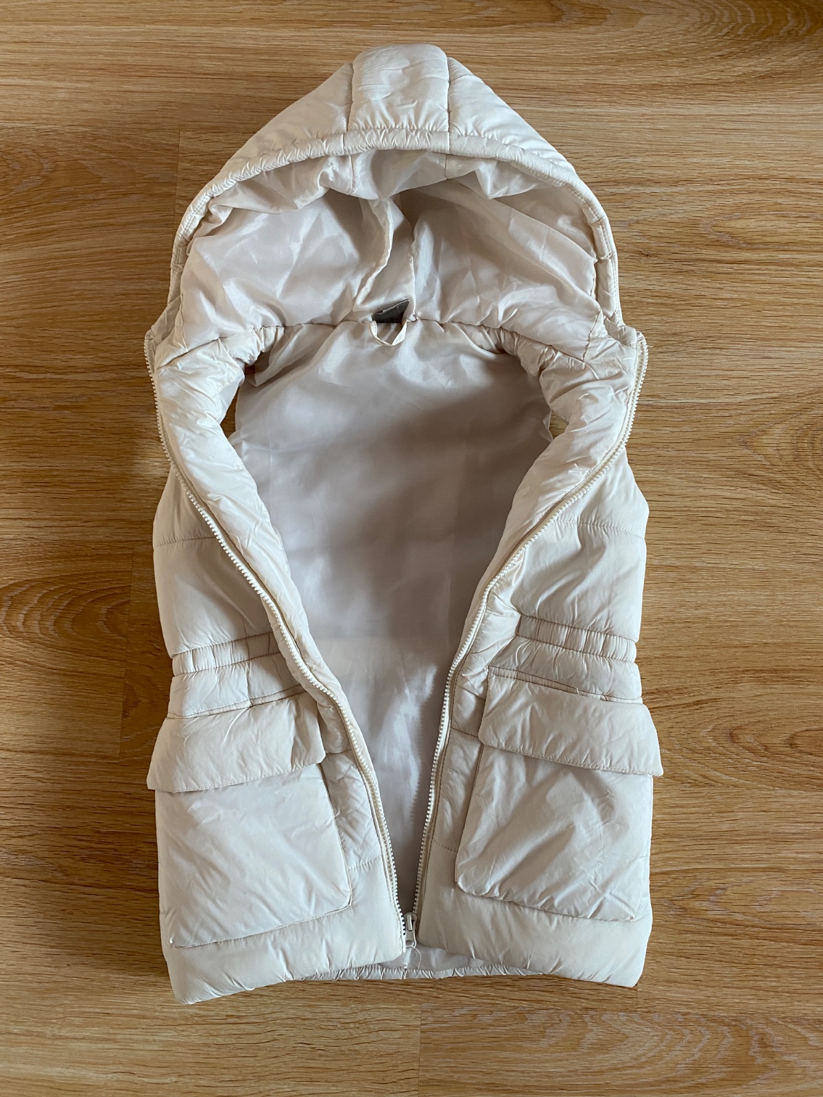pár krát oblečená, bez poškodenia, odopínacia kapucka, dĺžka od krku 45 cm, šírka pod pazuškami 42 cm x 2