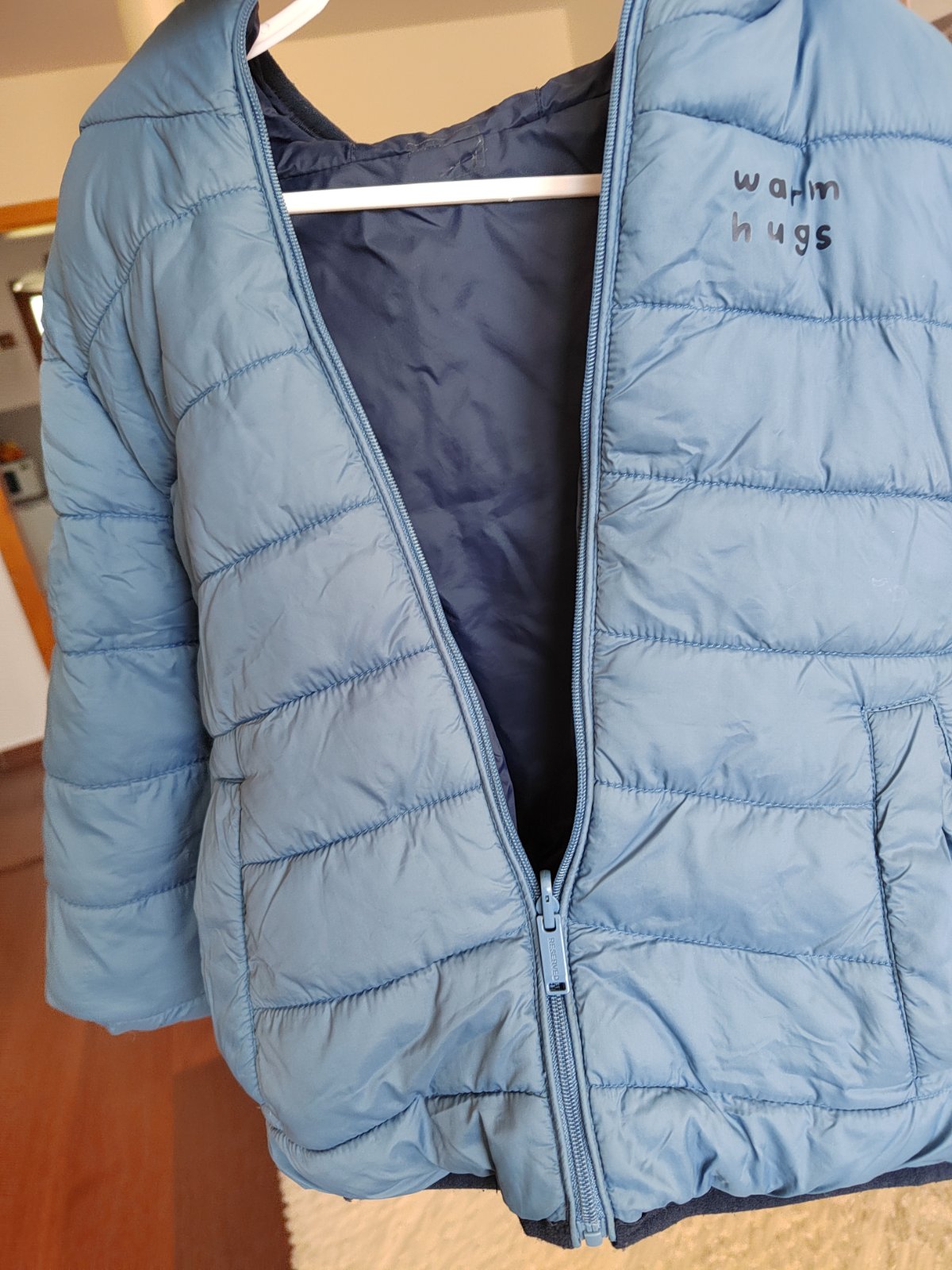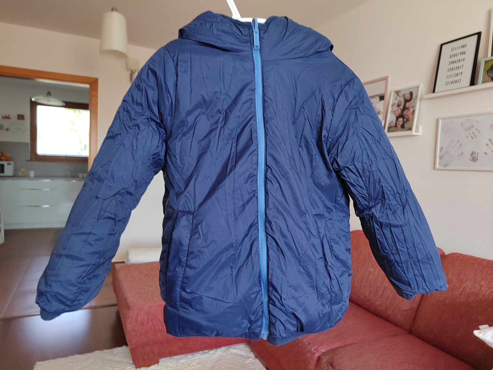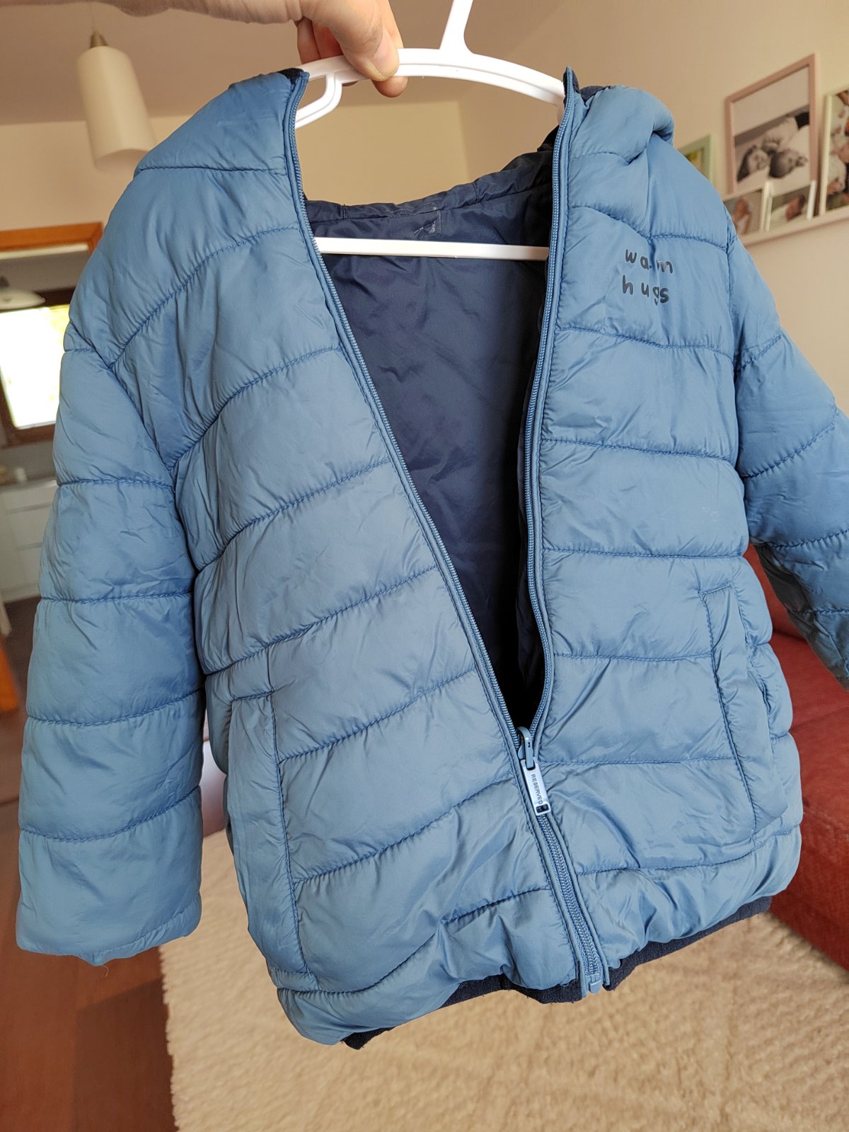 Obojstranná bunda - z jednej strany bledšie modrá, z druhej strany tmavomodrá.