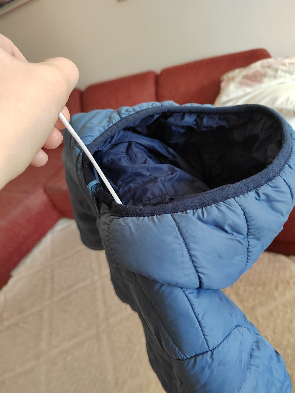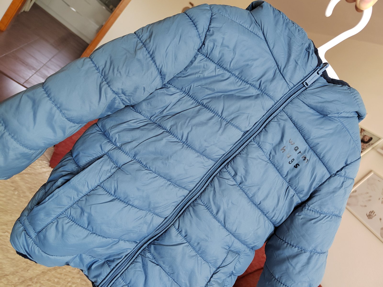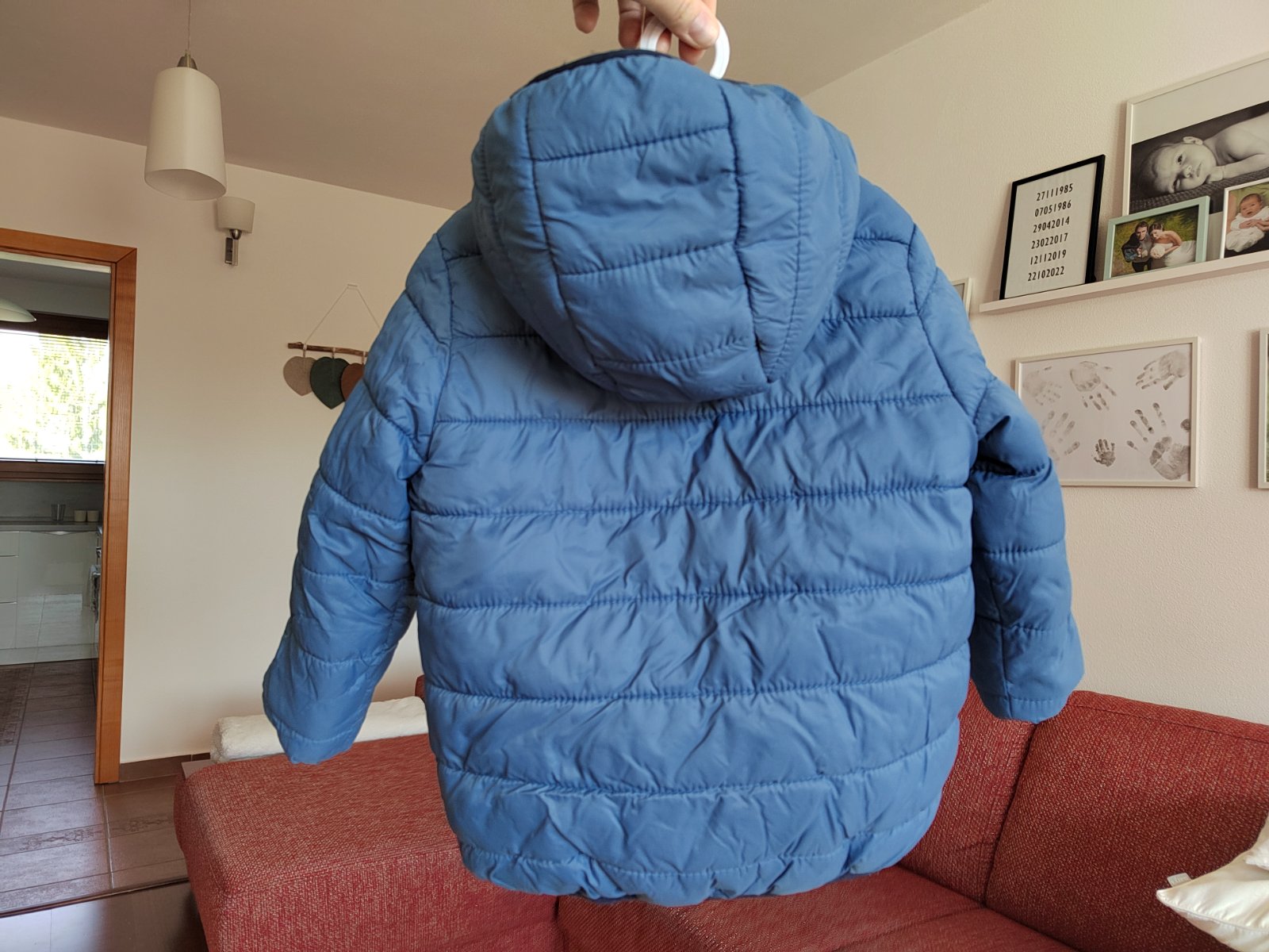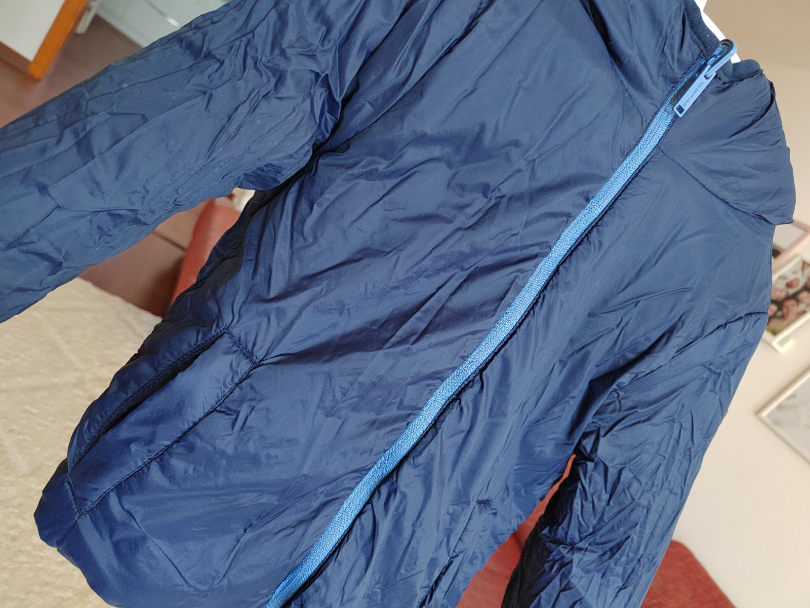 Obojstranná bunda - z jednej strany bledšie modrá, z druhej strany tmavomodrá.
