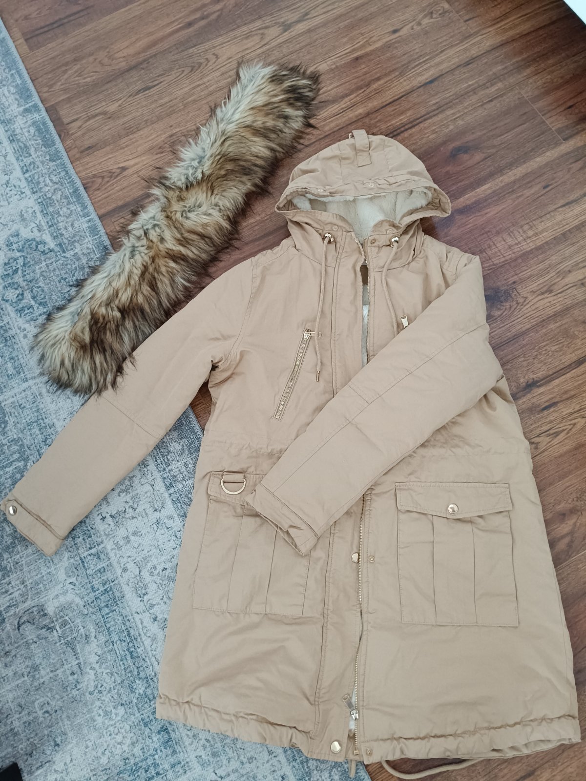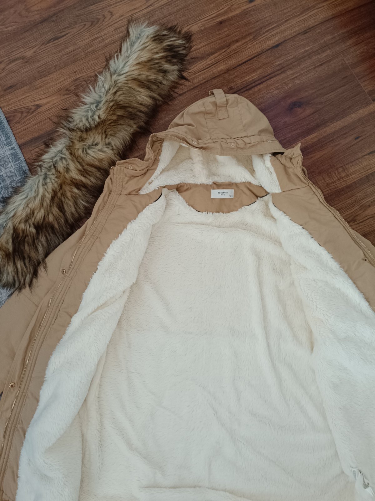 Veľmi zachovalá bunda, ako nová. Bunda bola málo nosená, nemá žiadne poškodenia, kožušinkou je odopínateľná na gombíky. Viac info v správe, kľudne píšte. Posielam len po prevode peňazí na účet.