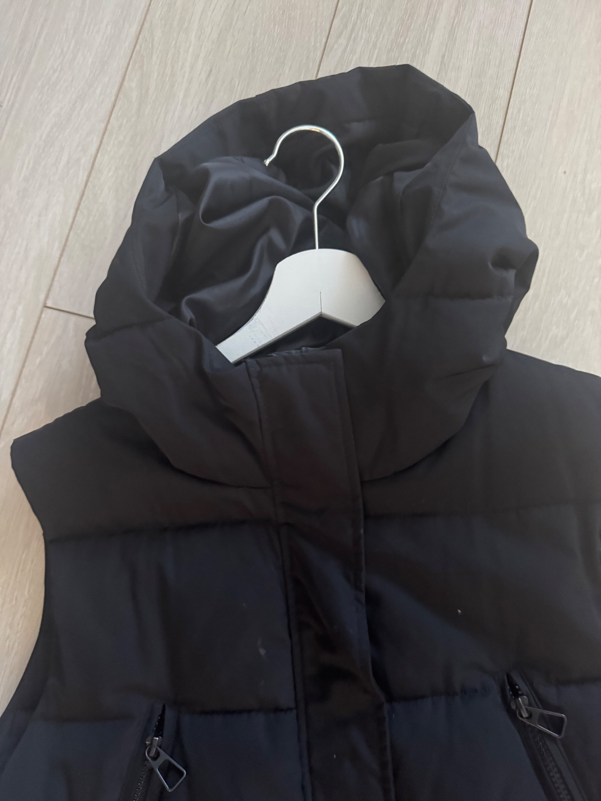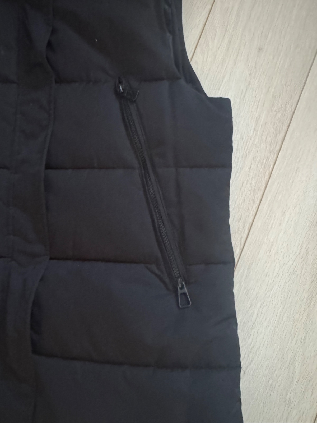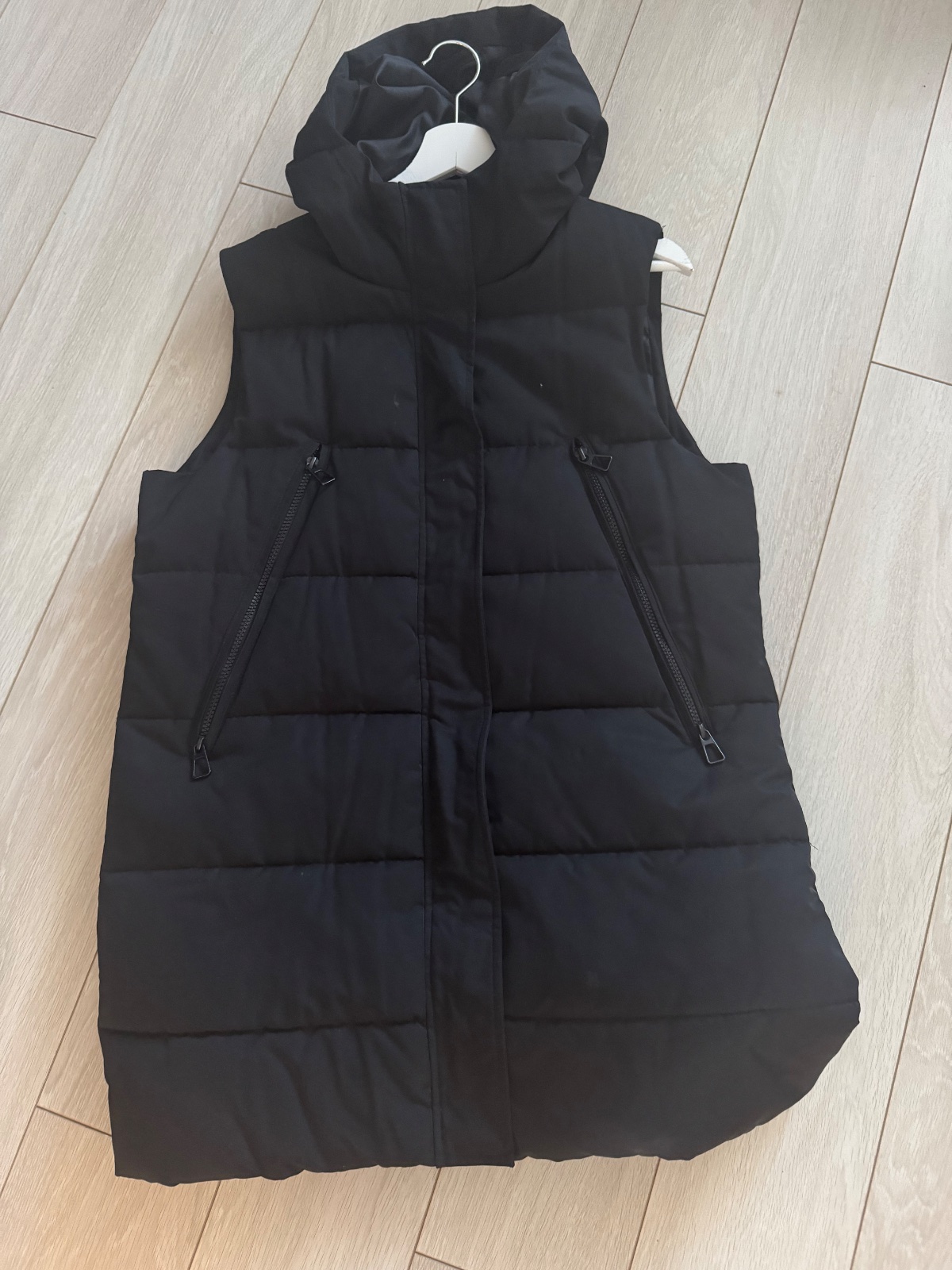 Predĺžená vesta zateplena. Velkost M. Nosena 1 sezonu. Celkova dlzka 82cm vpredu, zadna strana 89cm, sirka pod pazuchami 2 x 53cm