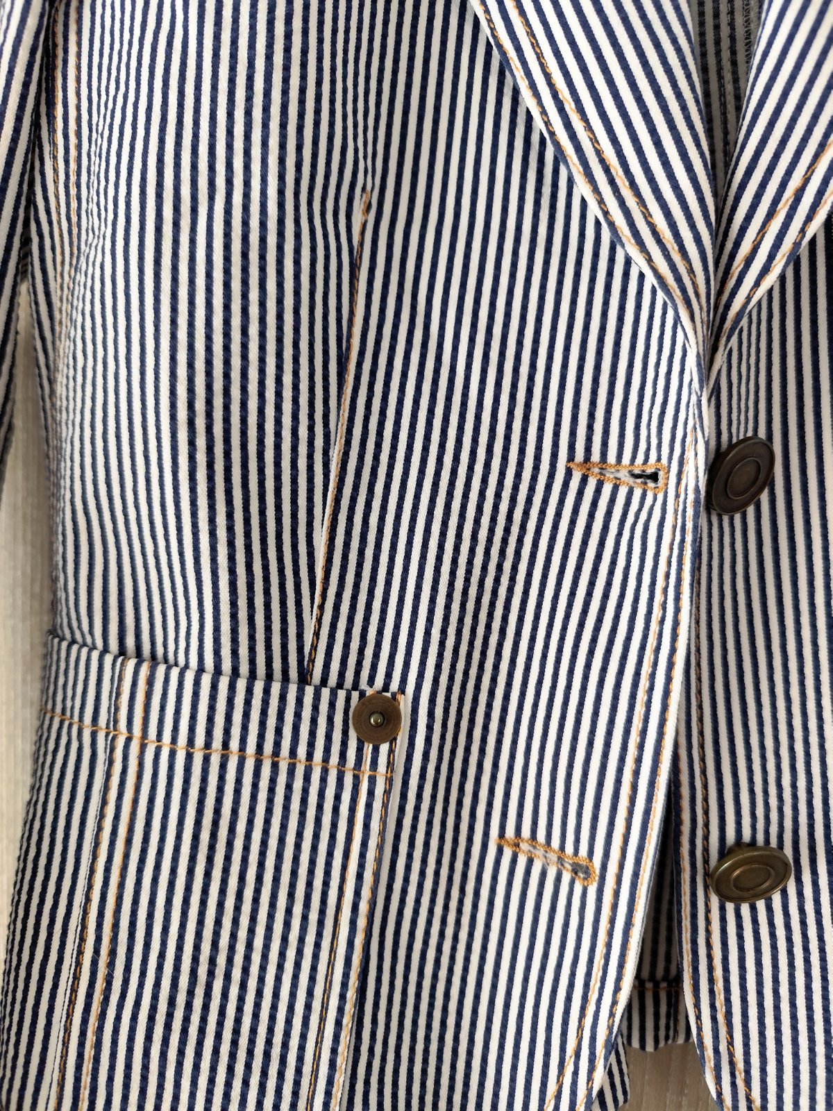 Bez podšívky, z Talianska. šírka saká cez prsia je 45 x2. Tiež mierne elastické. Dĺžka 52, dĺžka rukáva 61