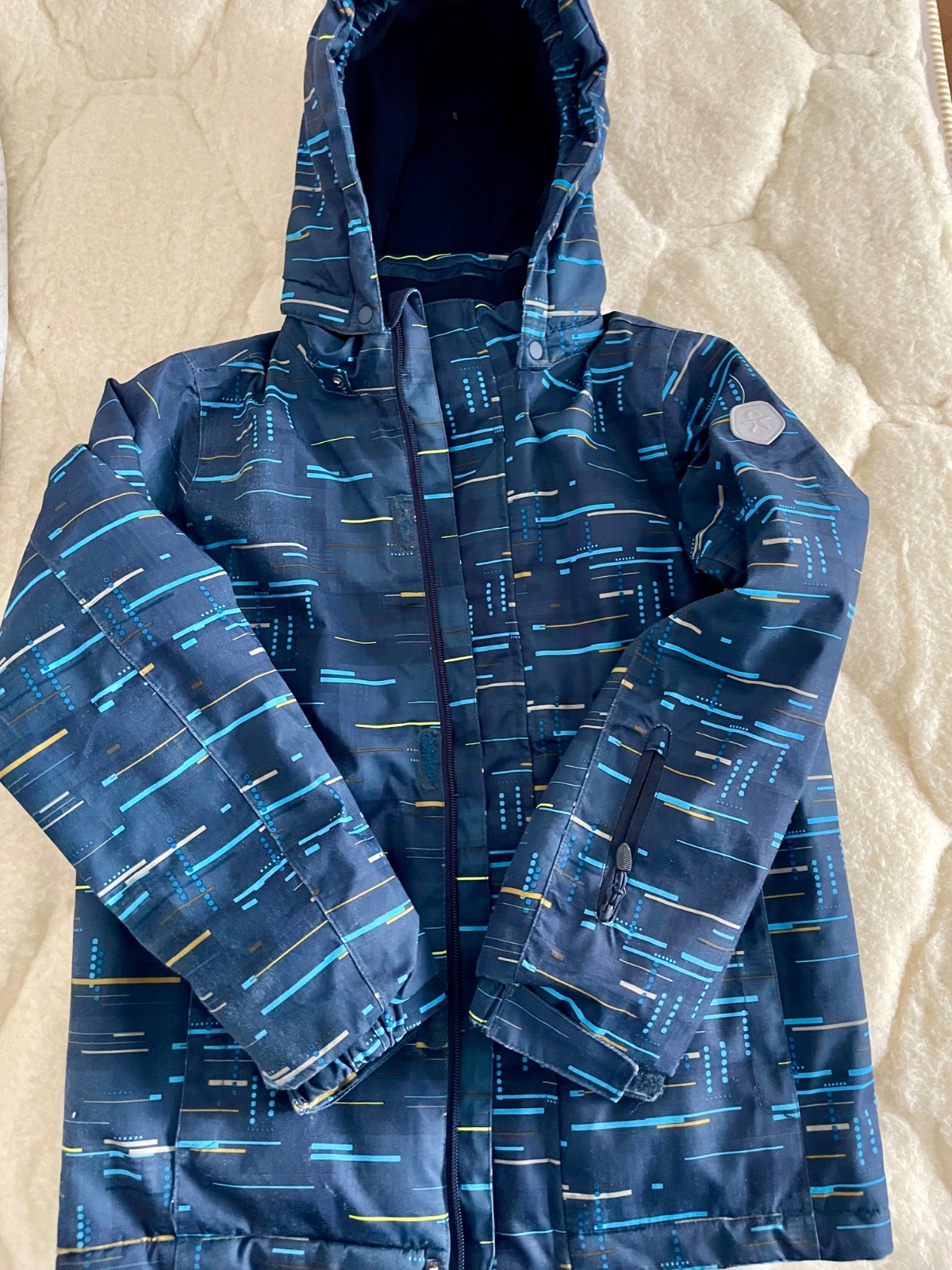 Predám zachovalú chlapčenskú zimnú / lyžiarsku bundu s odnímateľnou kapucňou, veľkosť 152, dĺžka 60cm, rukáv 56cm, vnútorné vrecko a vrecko na rukáve na skipass.