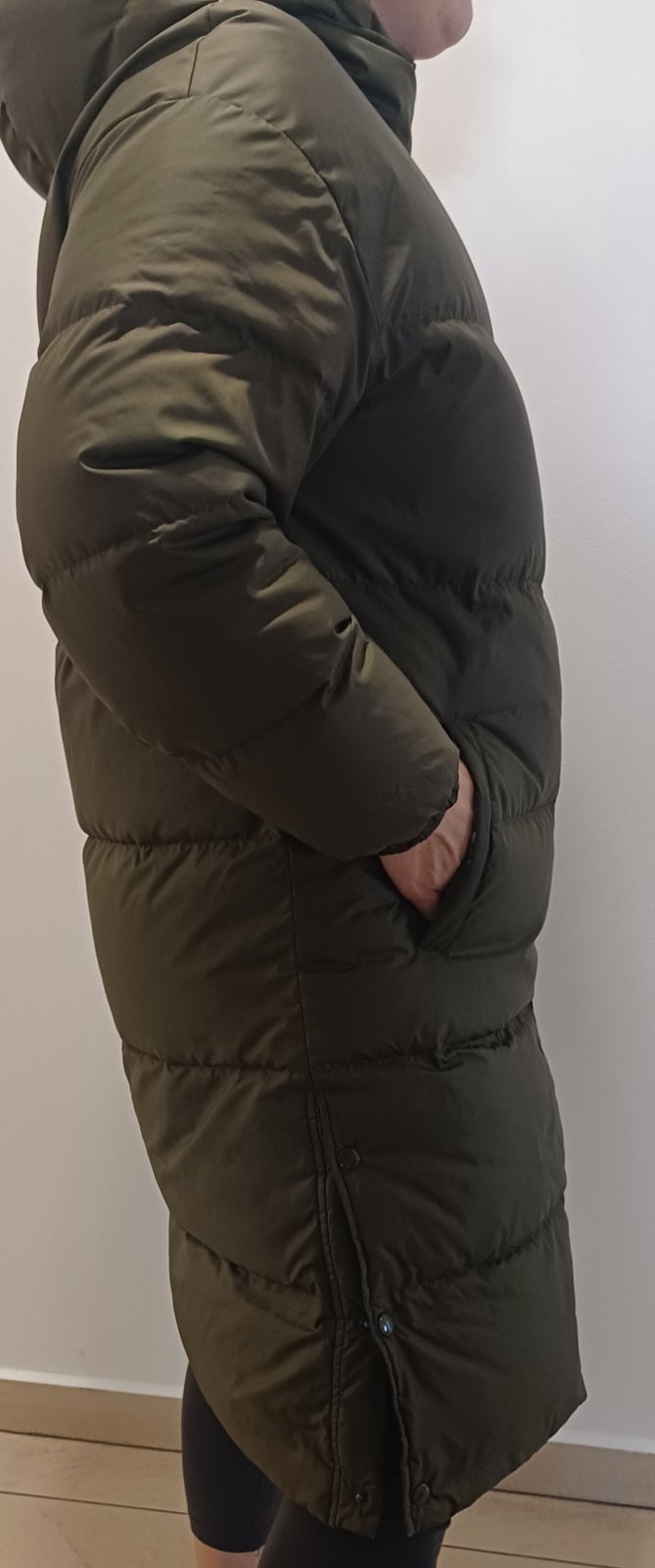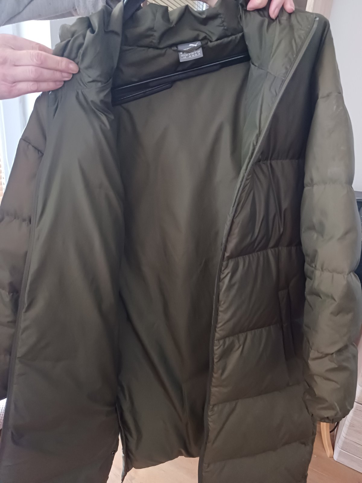 Ponukam používanú, v dobrom stave dlhy kabat, po kokena, zn. Puma. Dlzka od ramien 100 cm a sirka cez orsua cca 52 cm, velkost L. Je teplá, na boku doke sa da rozopnut 3 gombíkmi. Dohoda možná.