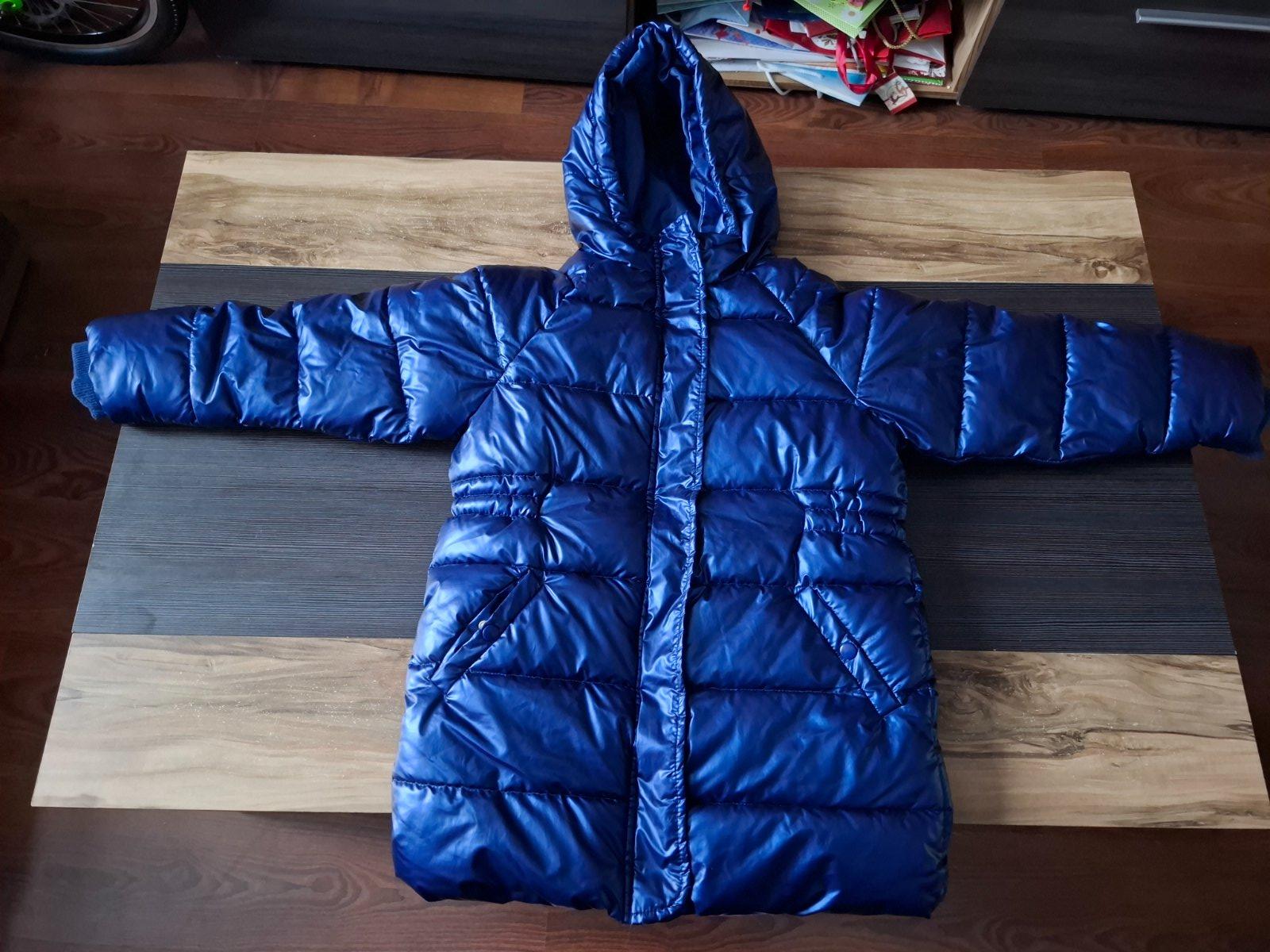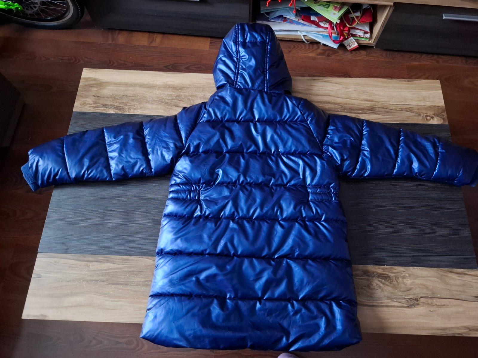 Ponúkam na predaj peknú zimnú predĺženú bundu/kabát po dcérke, kupovaná nová. Nosená minulú zimu. Pekná metalická farba, látka sa leskne na svetle.Nosená na striedačku s inou bundou.