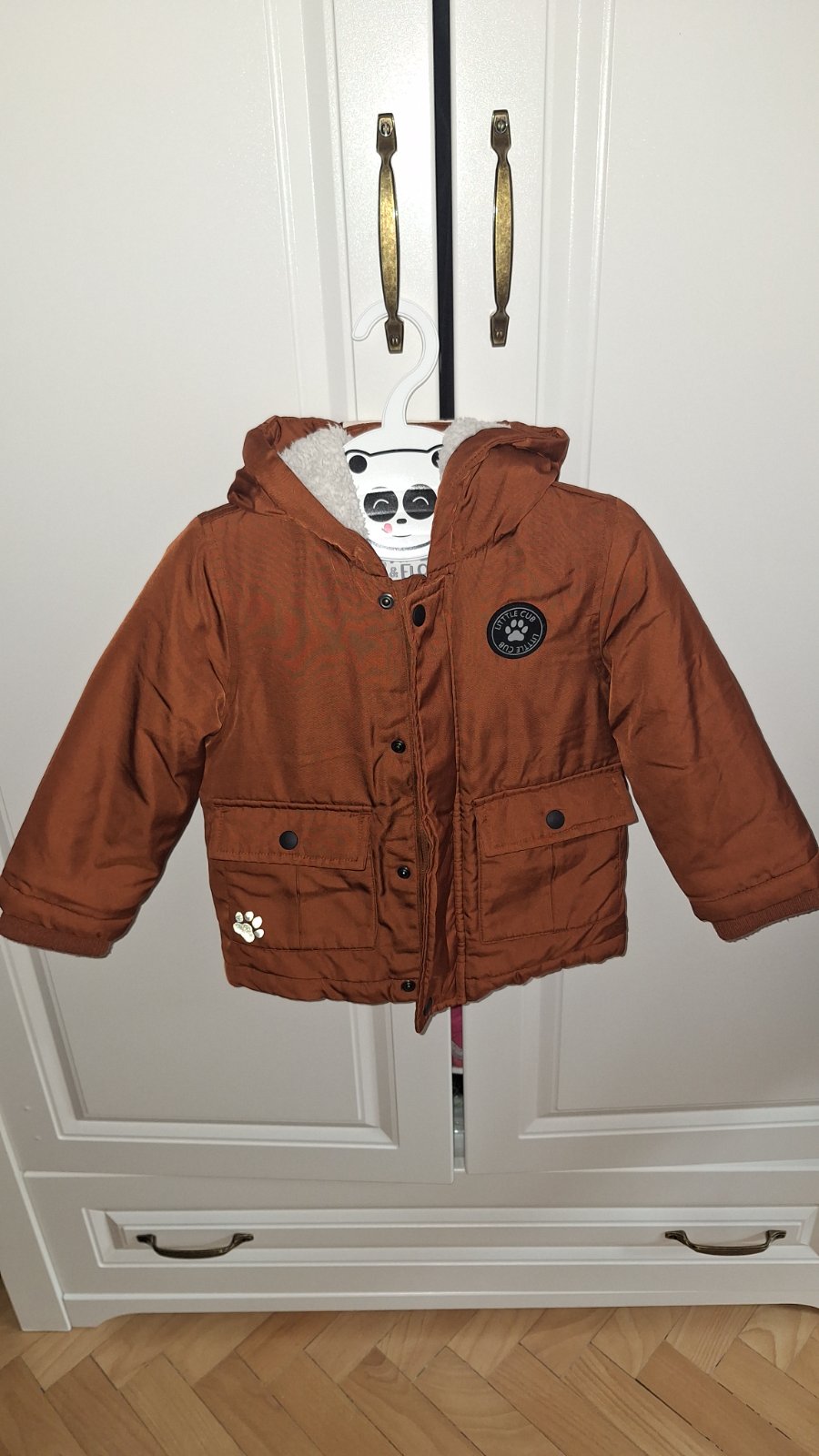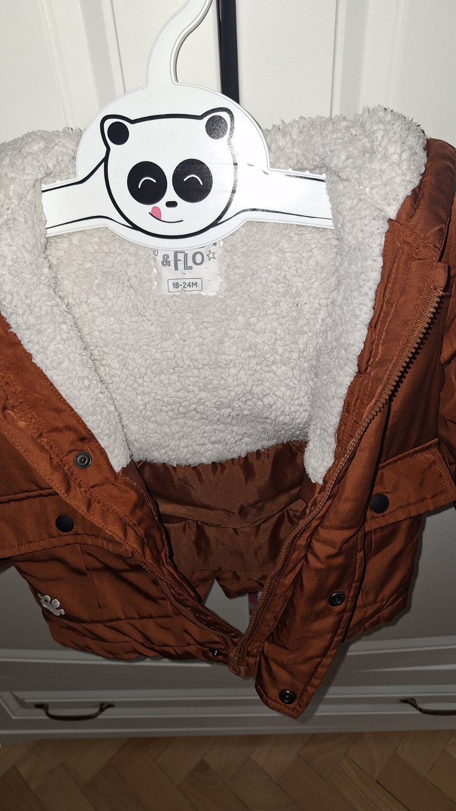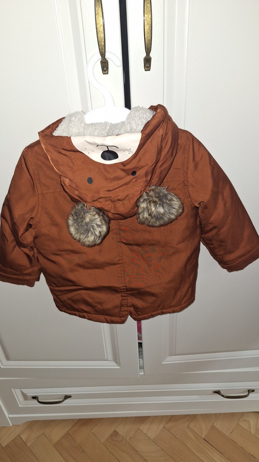 Veľmi dobrý, nosený stav, veľkosť je písaná 18-24 mesiacov. Na rukávoch je akurát zopár žmolkov.