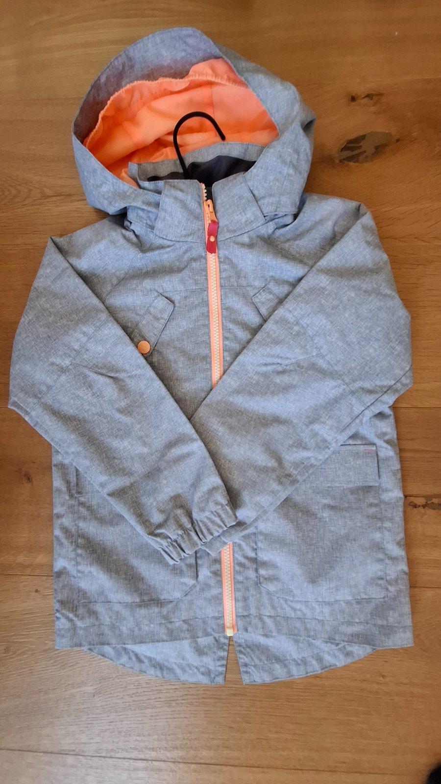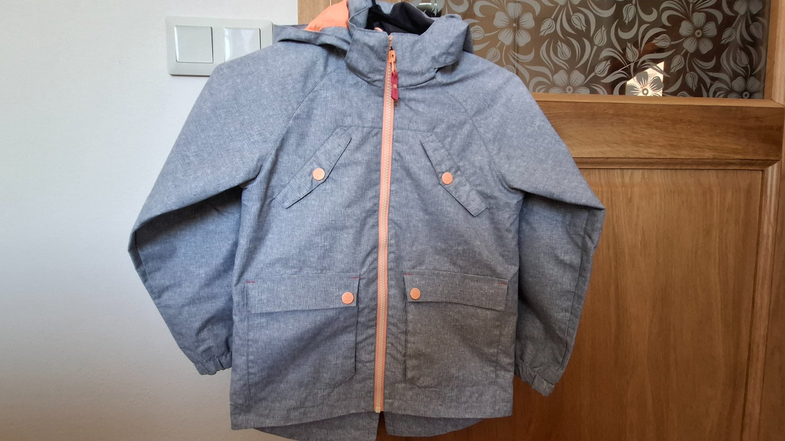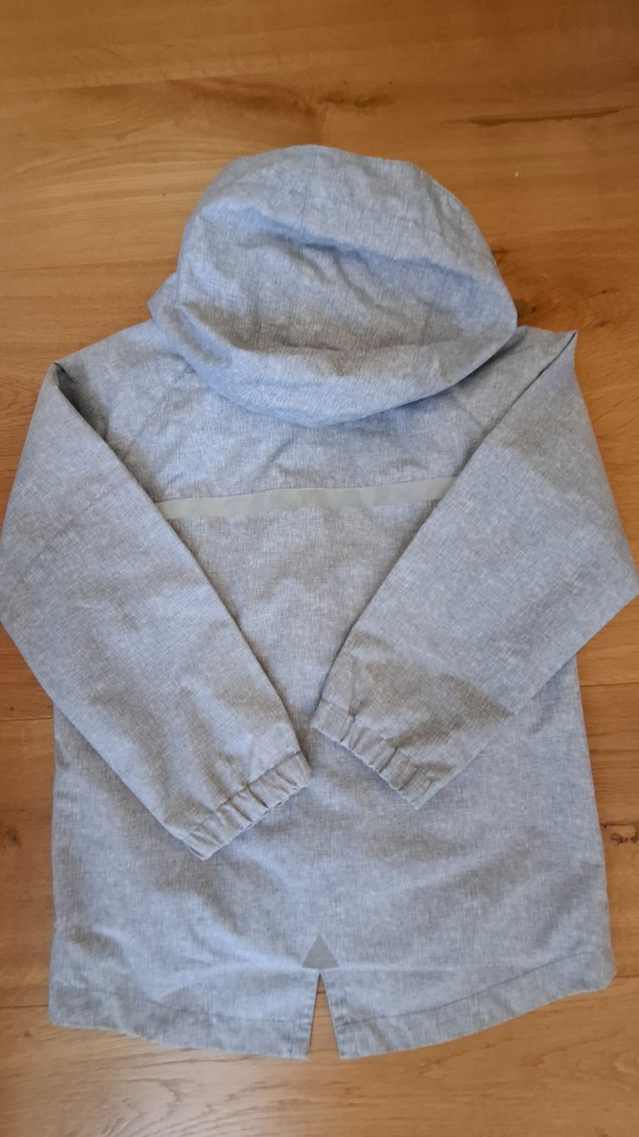 Velmi dobry stav,lahka bunda podsita tenuckou latkou,velkostne mi pride kusok vacsia ako 122. Zadny diel dlhsi,vzadu reflex pasik. Kapuca odopinatelna.