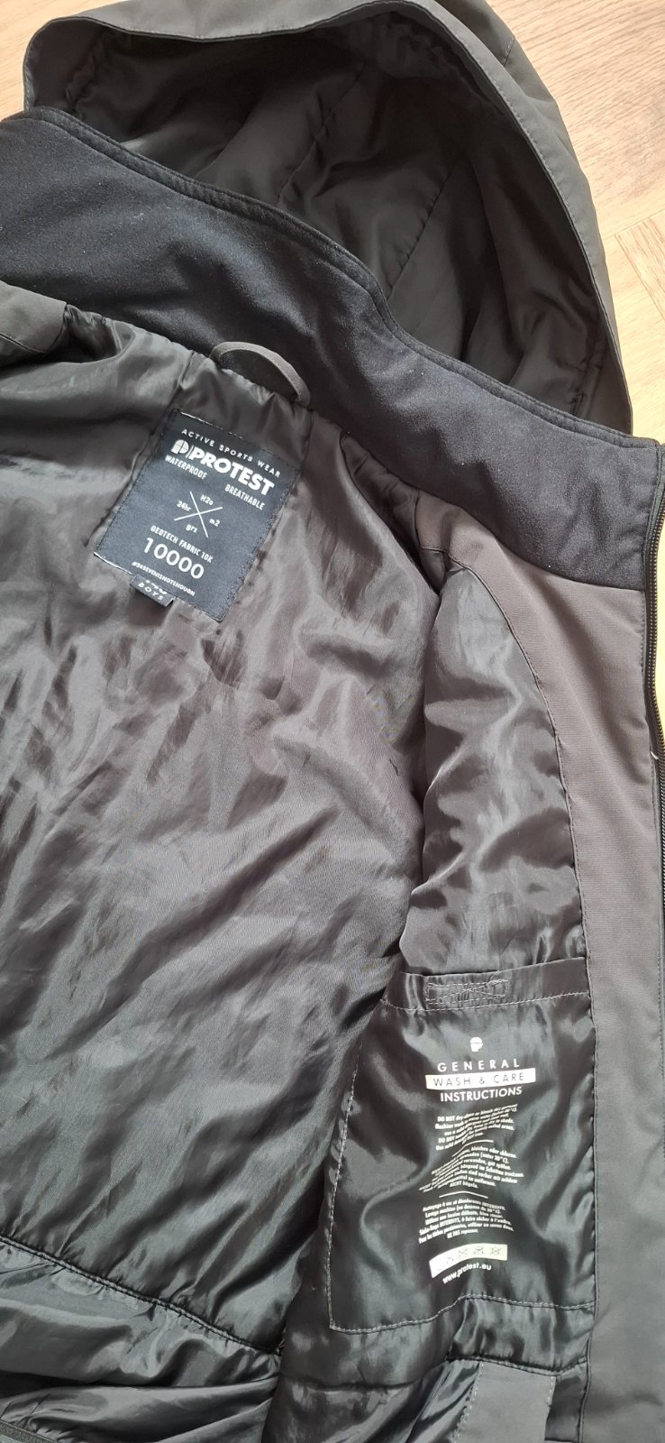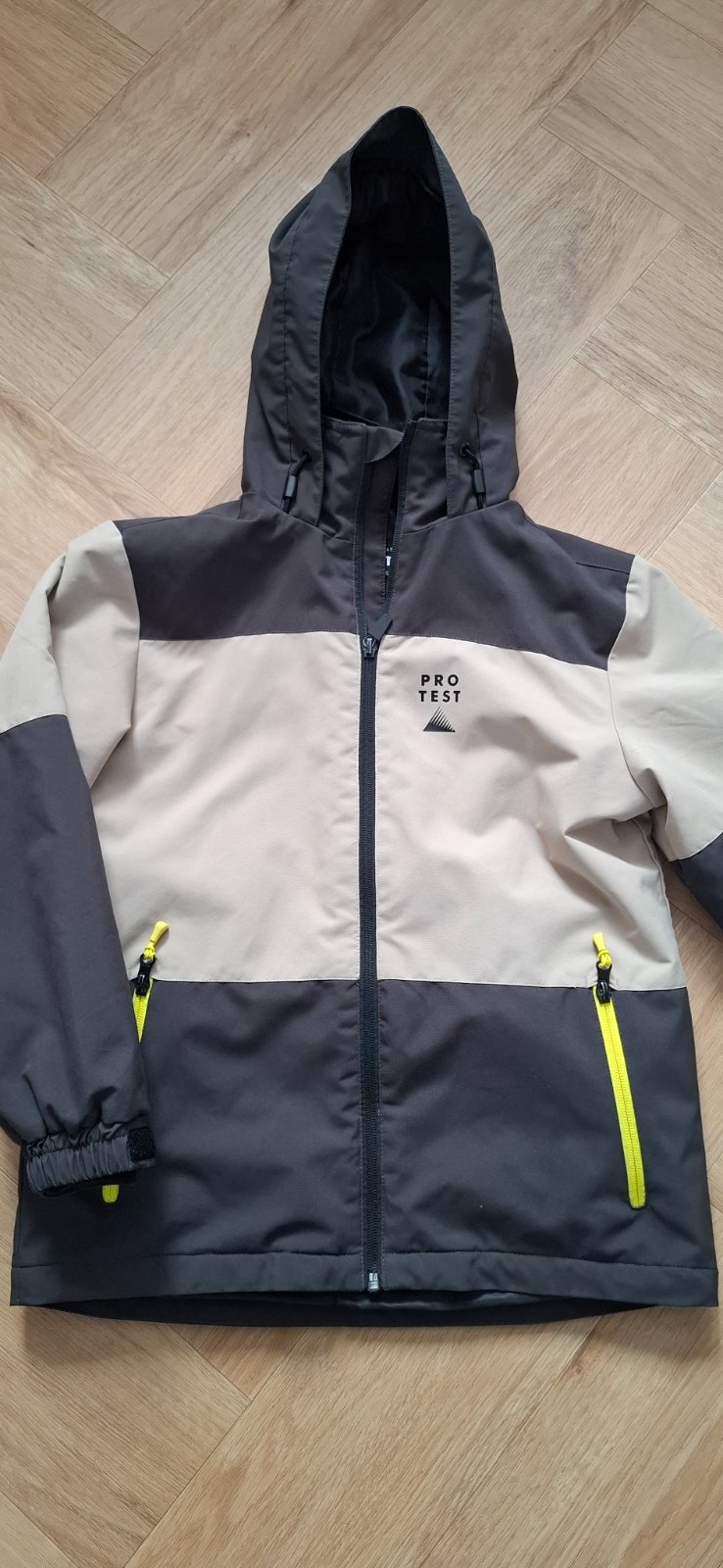 Zimná bunda v zachovalom stave, bez poškodení, s kapucňou, nedá sa odopnúť od bundy. Dĺžka bundy je 56 cm, zadná časť predĺžená na 60 cm, dĺžka rukávu je 50 cm + 1 cm patent. Reálna farba je na dru...
