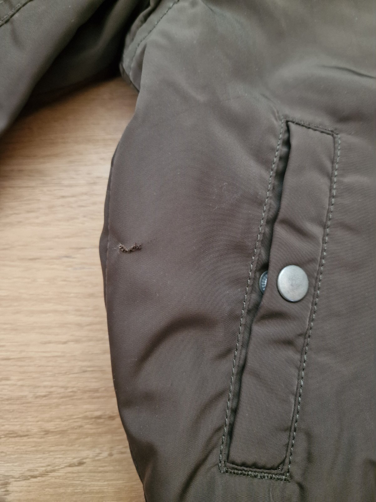 Predám zateplenú bombéročku H&M, veľ. 4-5, khaki farba, s patentami na rukávoch. Dĺžka 42 cm, rukávik 46 cm od krku, hrudníček 76 cm. V super stave, akurát vedľa pravého predného vrecka má kúštik roztrhnuté, dakde sme zapreli, nie je to však nič strašné, šikovná maminka si s tým hravo poradí. Zato aj tá cena. Cena 5 € plus poštovné.