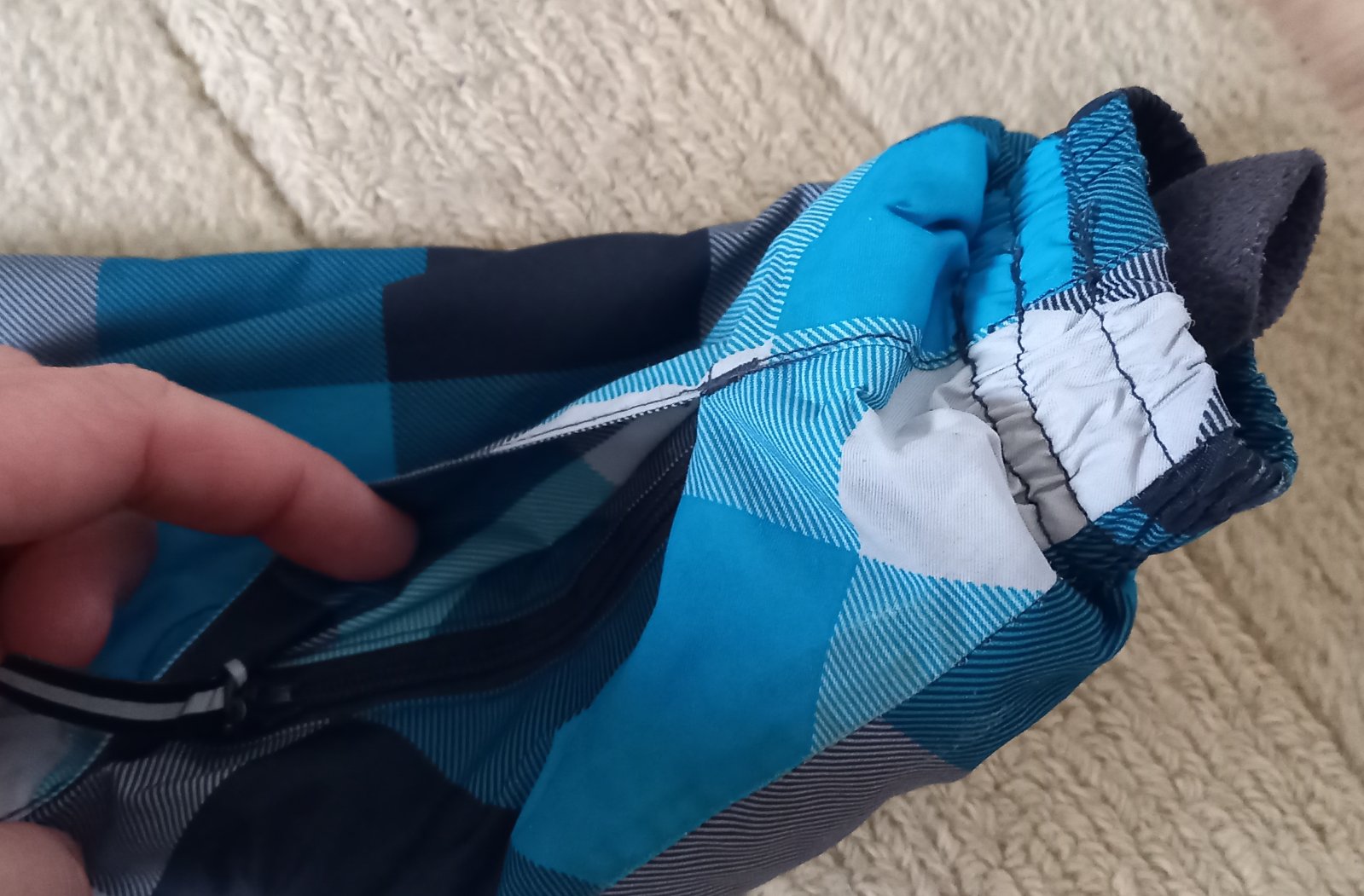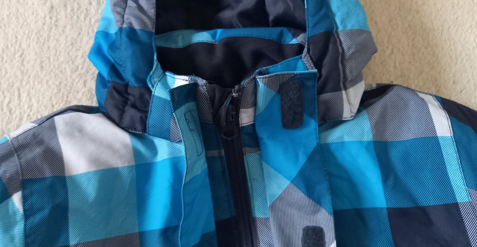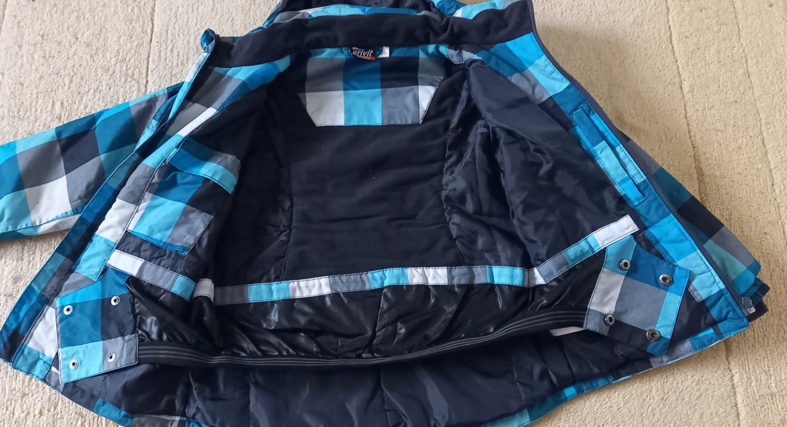 Veľmi fajn bunda, vhodná na zimu, aj na lyžovanie, sankovacku. Veľkosť 122/128. Vysoký golier proti prenikaniu, vsite rukávy proti vniknutiu snehu, na jednom rukáve zips na ski pas, dole na páse vsitw prvky proti vniknutiu snehu