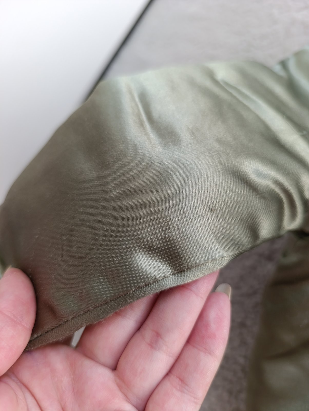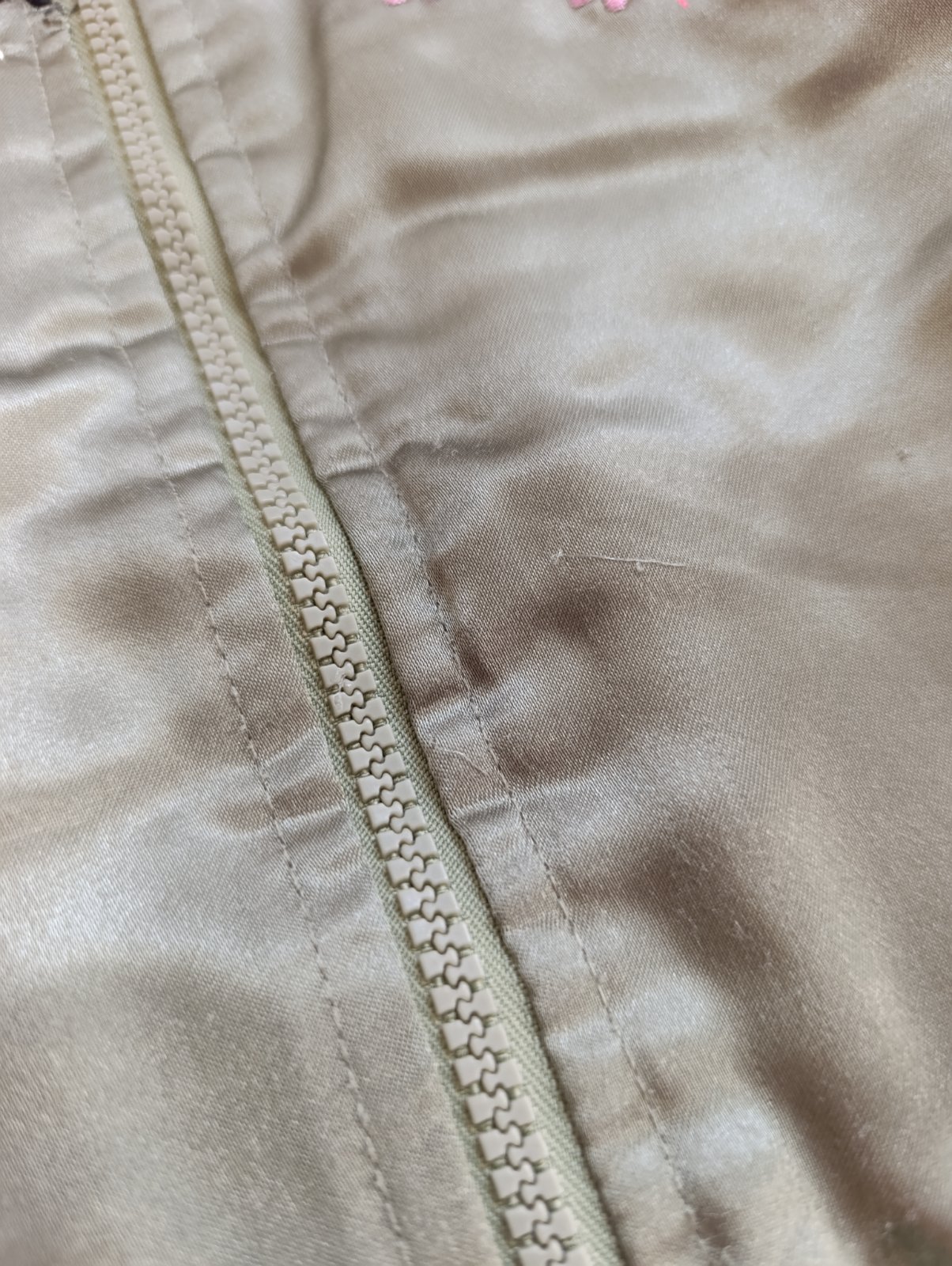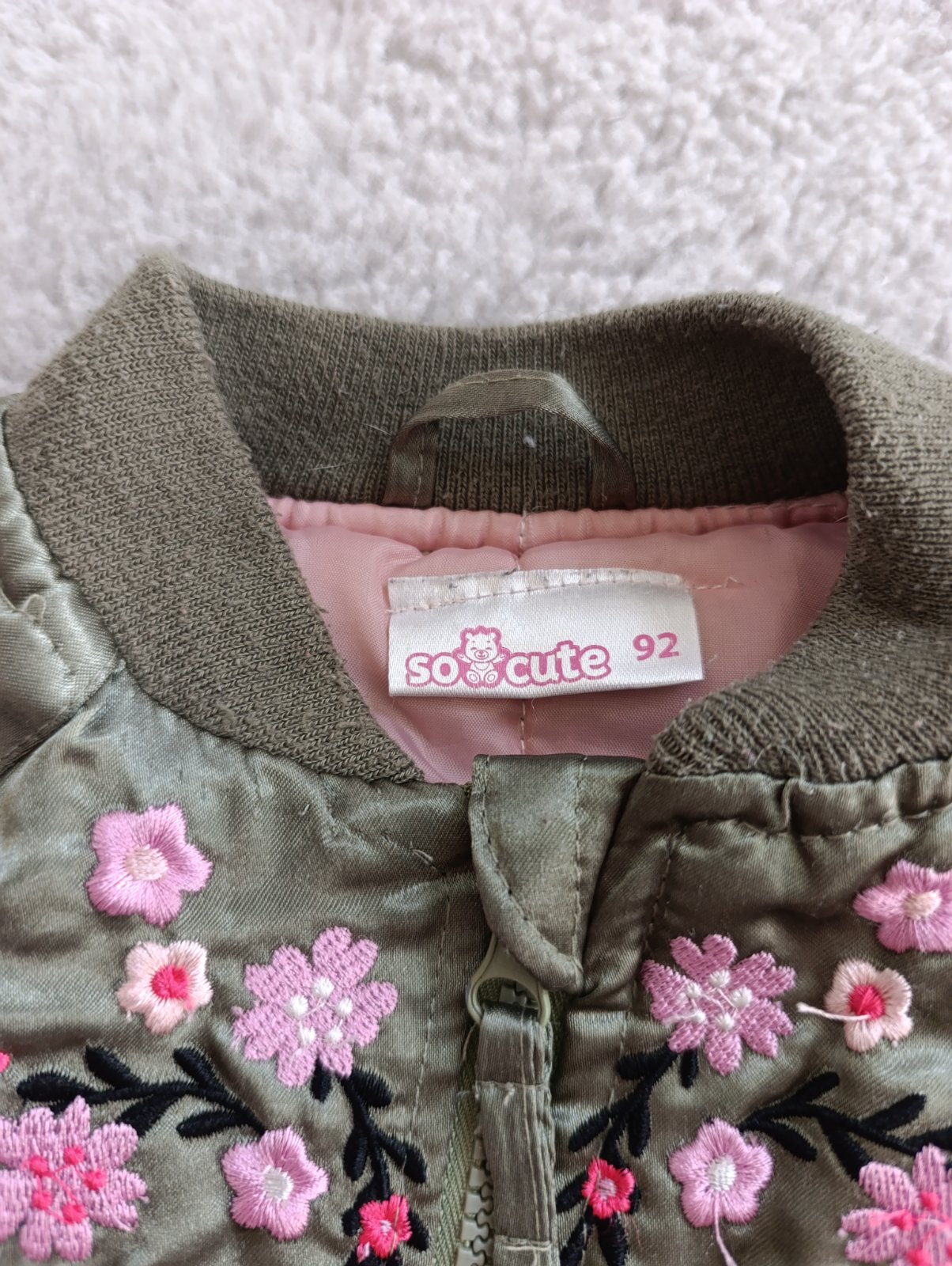Zelená bunda má pár malinkých zatiahnutí, ktoré ani nevidno. Cena spolu 5€.