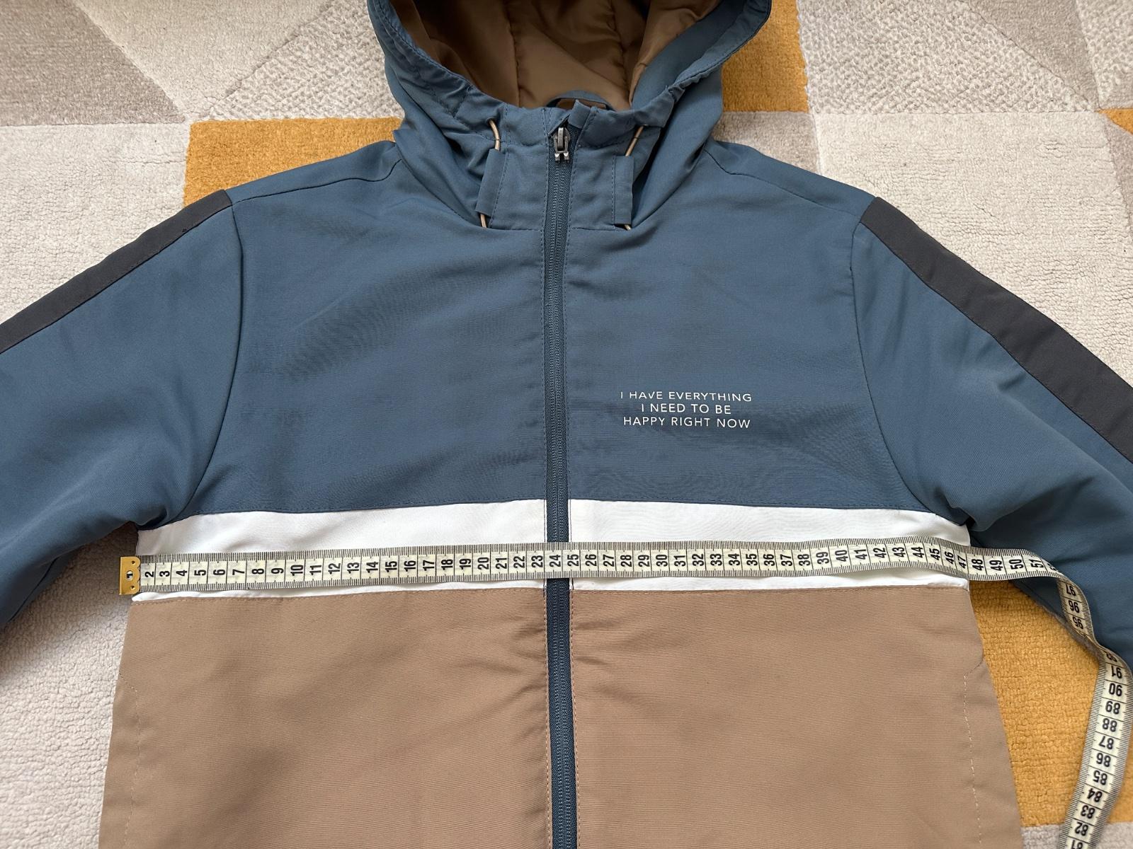 Skvelá prechodná bunda Reserved, veľkosť 152, rozmery na fotkách. Pekná modrošedo-hnedá kombinácia. Nosená len jednu sezónu aj to na striedačkou s inou. Nemá žmolky na patentoch, super stav, no synovi sa podarilo odlomiť z bežca na zipse. Dá sa to zipsovať, len je bežec trochu kratší, viď poslednú fotku.