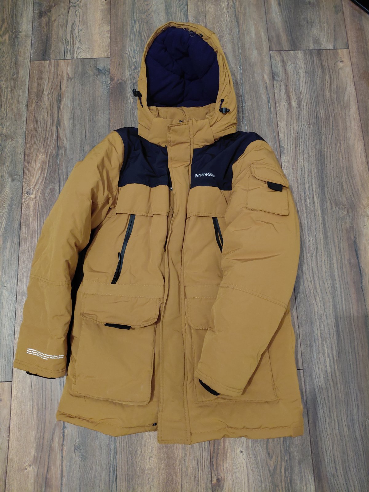 Kvalitná oteplená bunda bledohorčicovej farby, zapínanie na cvočky, materiál 100% polyester, super stav....nie je originál šírka v podpazuší 56x2 cm, pás 55x2 cm, spodok 55x2 cm, dl. 78 cm, rukáv...