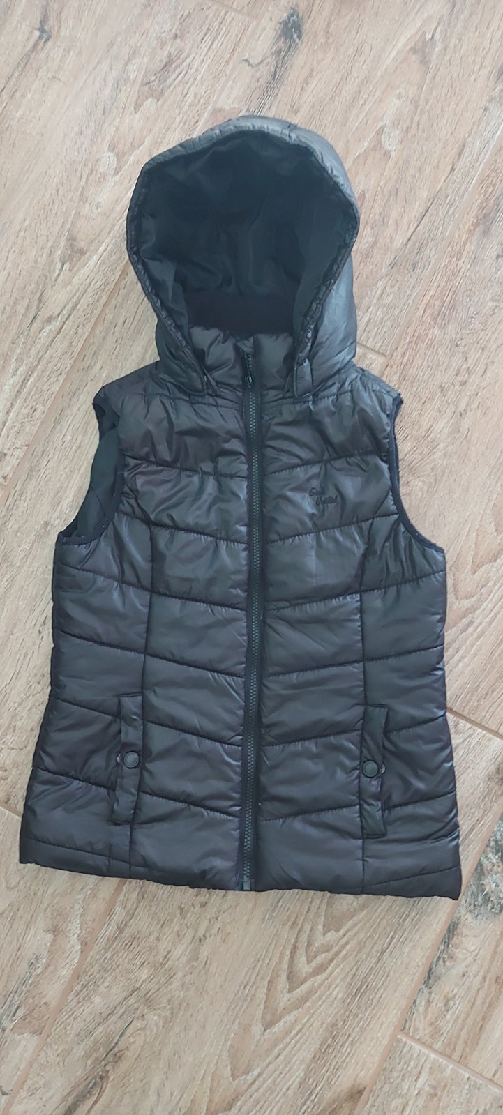 Vesta je vo veľmi dobrom nosenom stave, bez poškodenia. Límec okolo krku je zvnútra flísový, vrecká na zapínanie. Bez kapucne. Veľkosť 158/164. Dĺźka 58 cm, šírka 43 cm x2