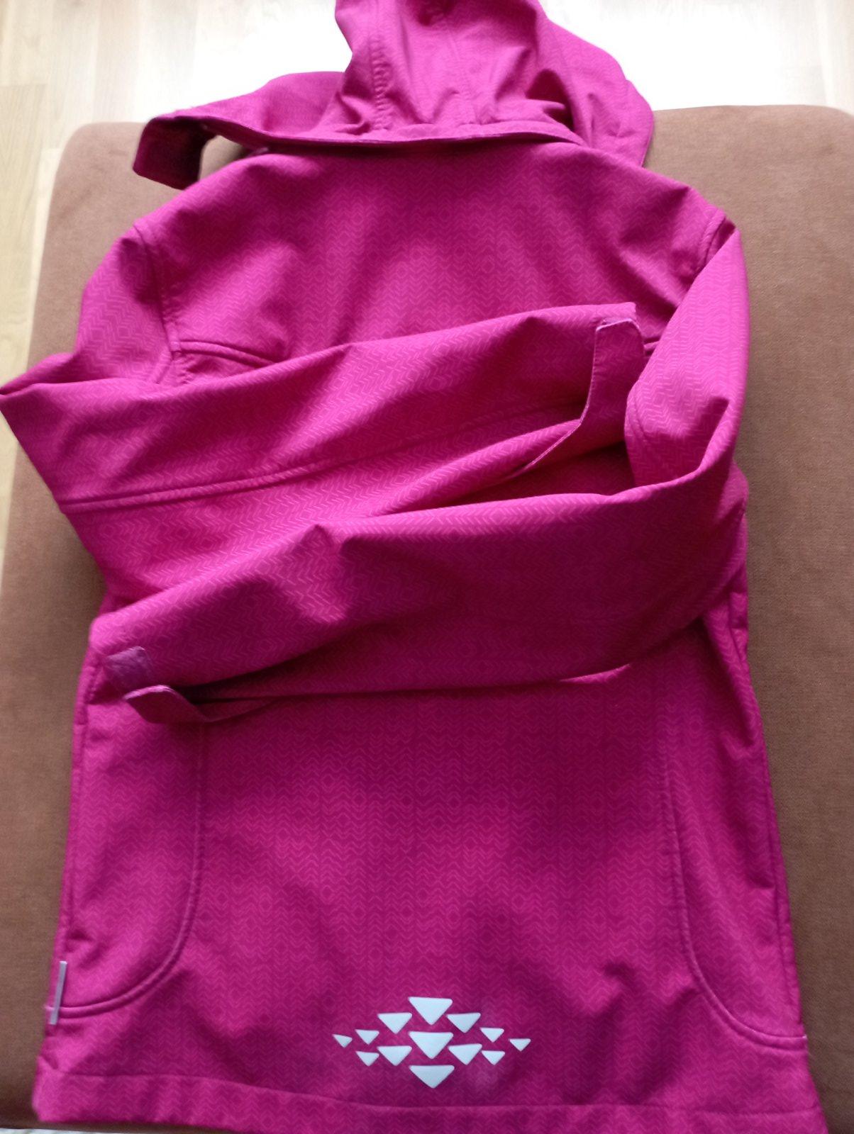 Predám dievčenskú zachovalú softshellovu bundu bordovej farby v.170.Má 2 bočné vrecká na zips, zapínanie je na zips a odnimateľna kapucňa.Cena je bez poštovného.