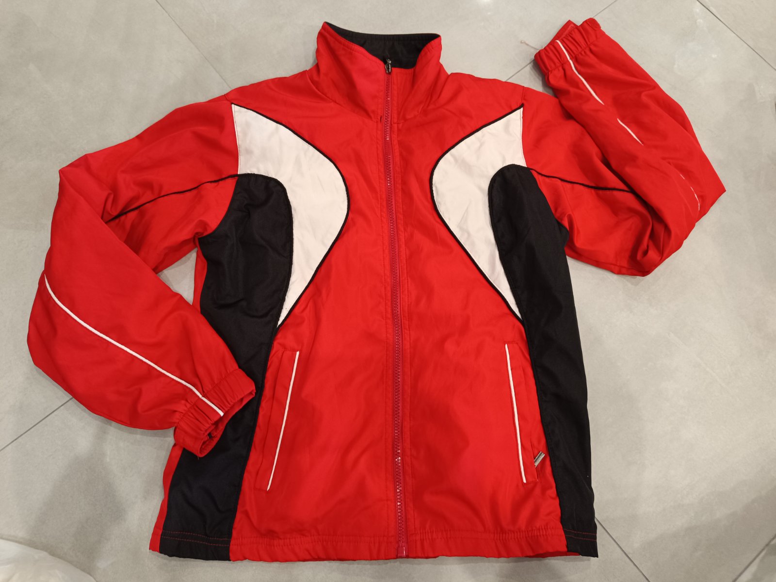 kvalitná, nepremokavá vetrovka zn. Husky, Simbea štítok už nie je, neviem aká to bola veľkosť, ale pravdepodobne S – vhodné aj M – resp. bez ďalších hrubších vrstiev pod vetrovkou miery však sú: ...