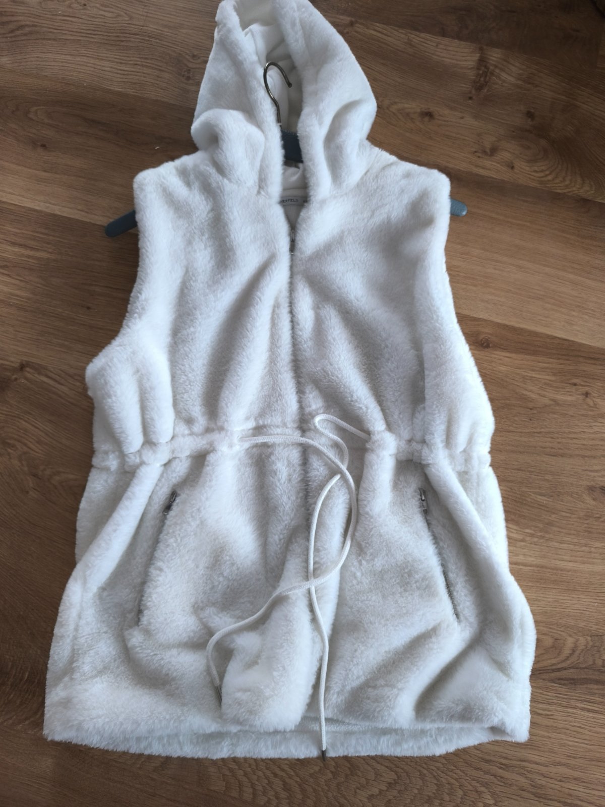 Predám teplejšiu vestu c.42 alebo XL.Rozmery:šírka cez prsia 54x2cm,dĺžka bez kapucne 59cm