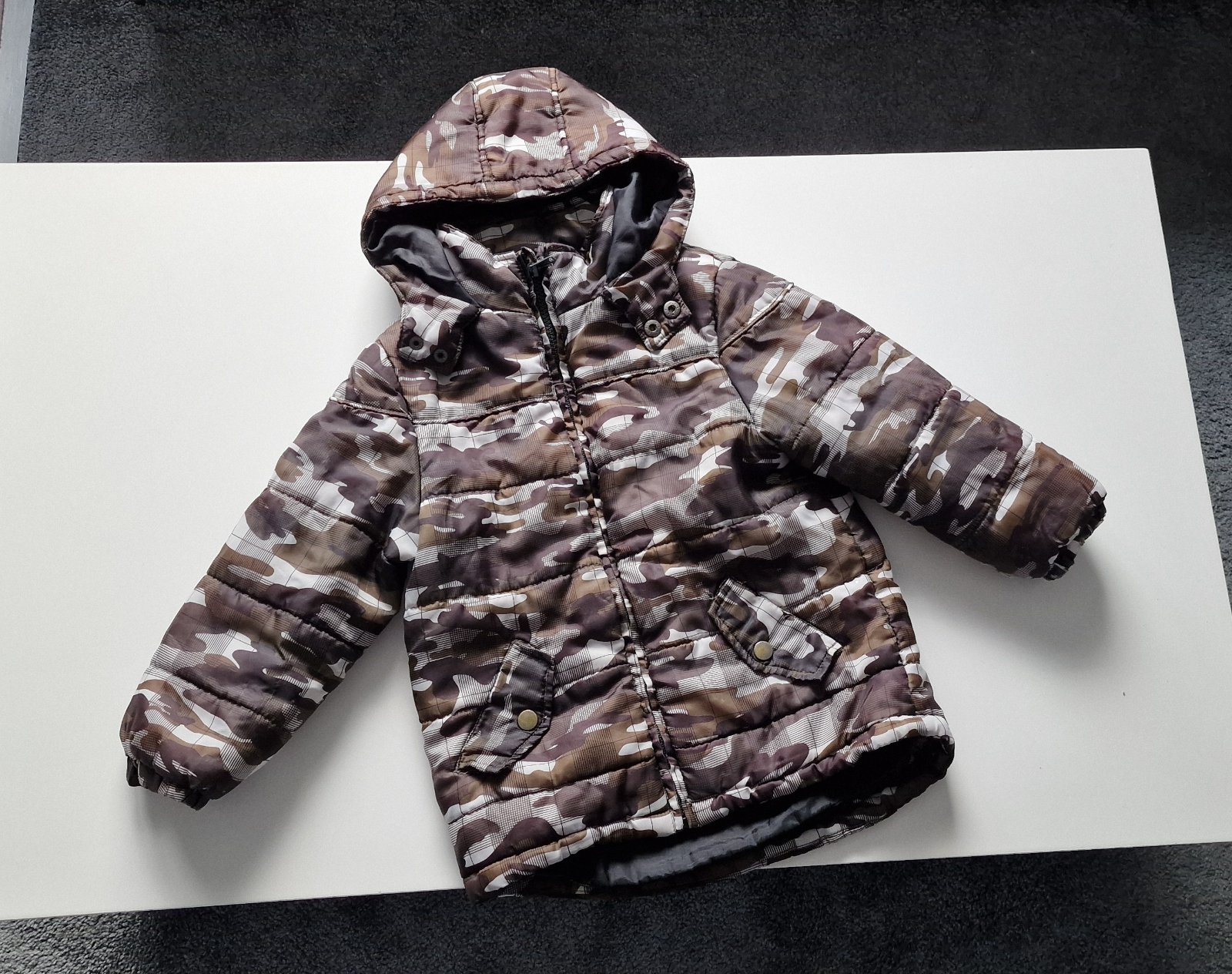Predám krásnu nepremokavú bundu NEXT vo veľmi dobrom stave. Na fotke vyzerá šedá ale farba je viac do zelena(olivová). Je zateplená hrubším flísom. Aj na chladnejšiu jar/jeseň. Celková dĺžka je 47c...