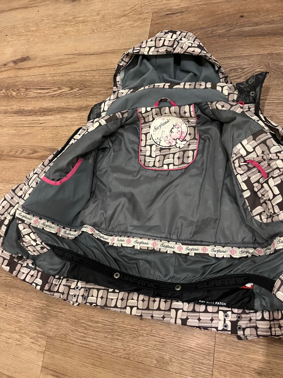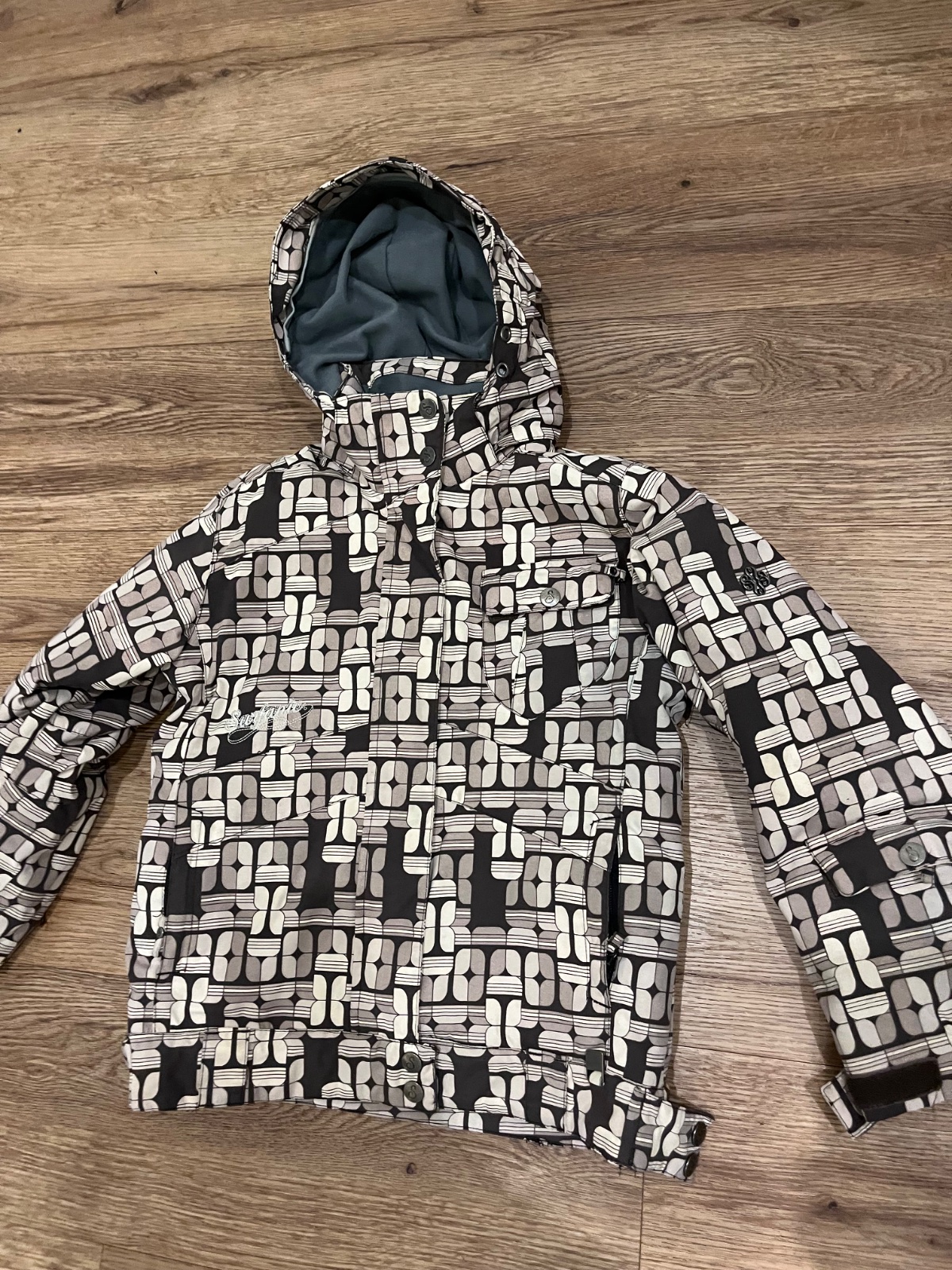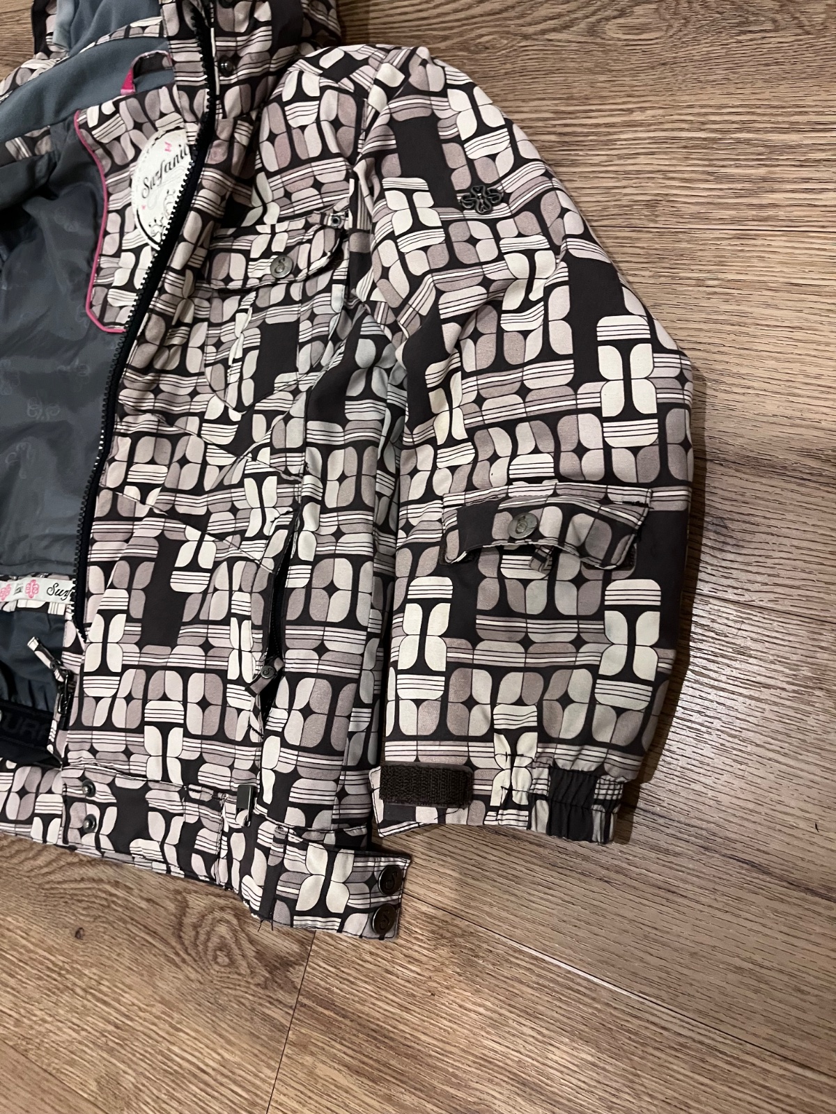 Predam lyžiarsku bundu zn.Surfanic (farba je tmavo-bledo-hnedo-biela), naspodu snežný pás., vnutorne s vonkajšie vrecka, vrat. vrecka na rukave. Veľkosť 128.