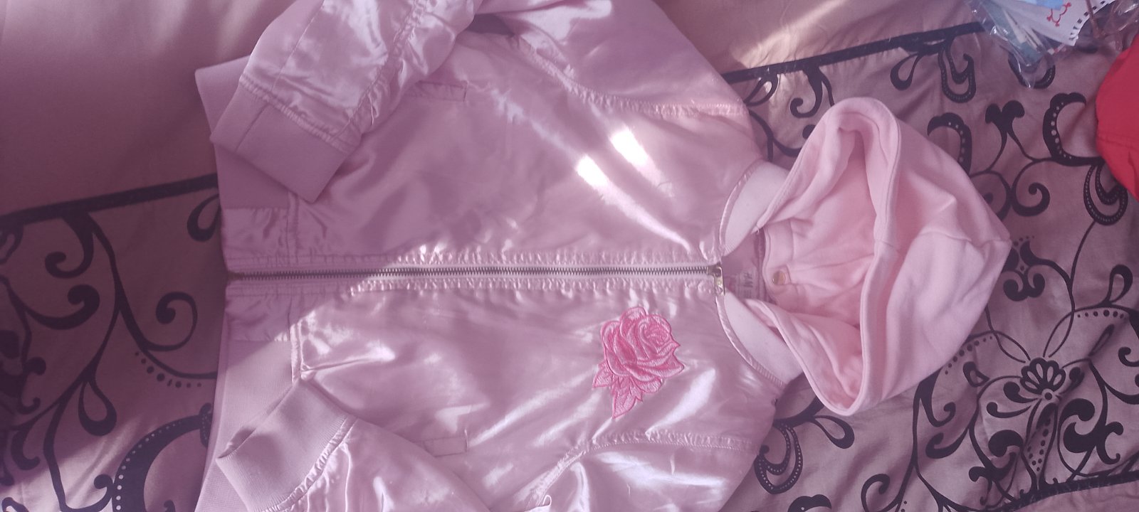 Predám peknú používanú bundicku, ruzovokremovej farby do polovice zateplena flisom. Je v peknom stave,len ma 3 zadretia,zatiahnutia a dierky.. jedna na rukave a zo zadu dve z chrbata bundicky od s...