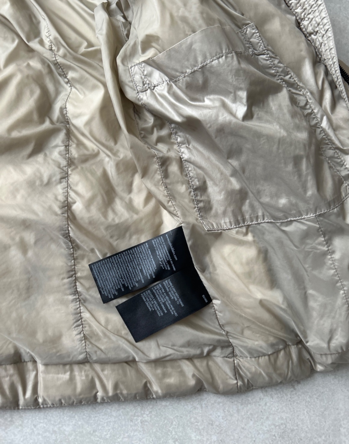 Prechodná bunda značky Calvin Klein je to originál vyplň už nie je úplne rovnomerne rozložená a našla som aj zopár zachytení, cena prispôsobená.
