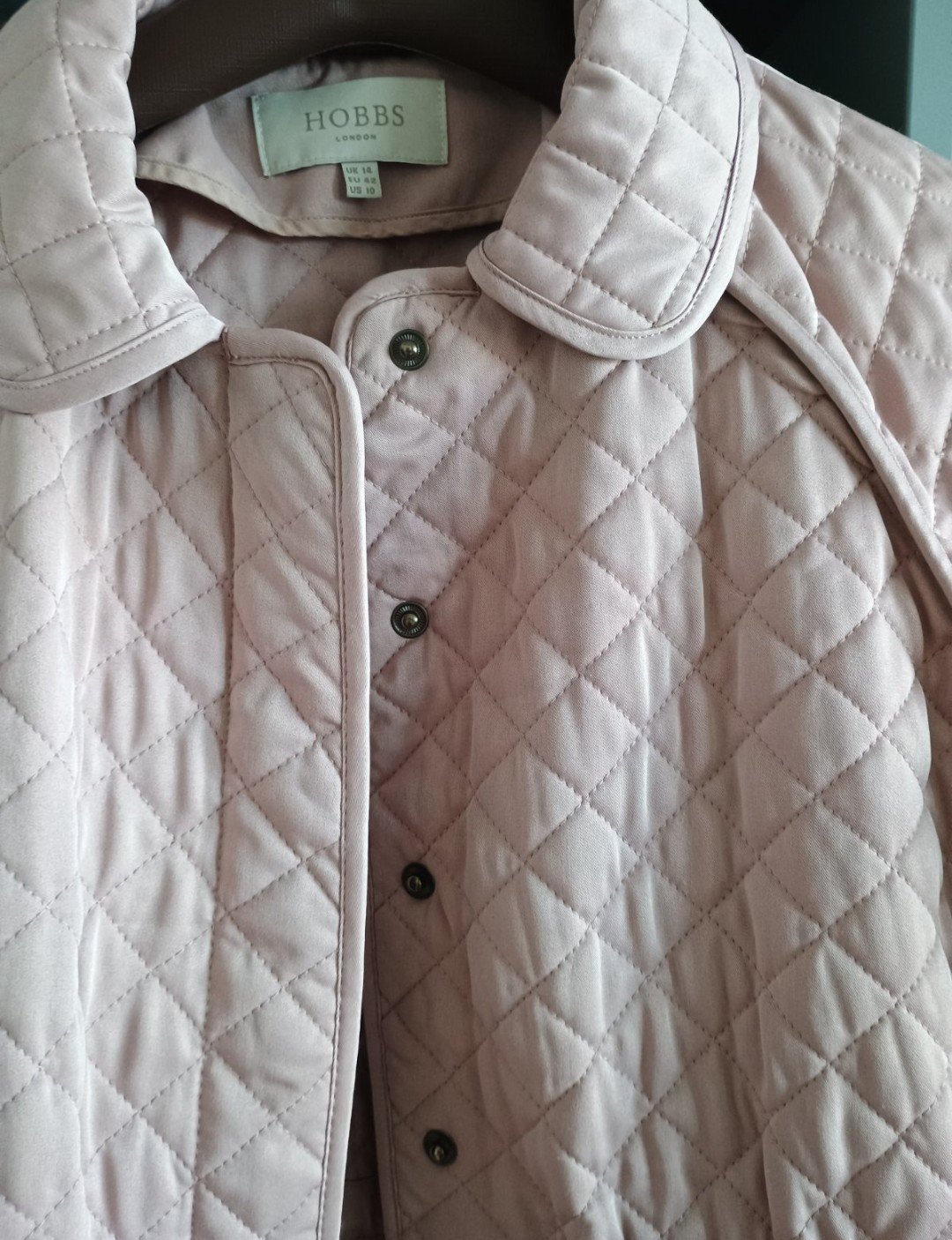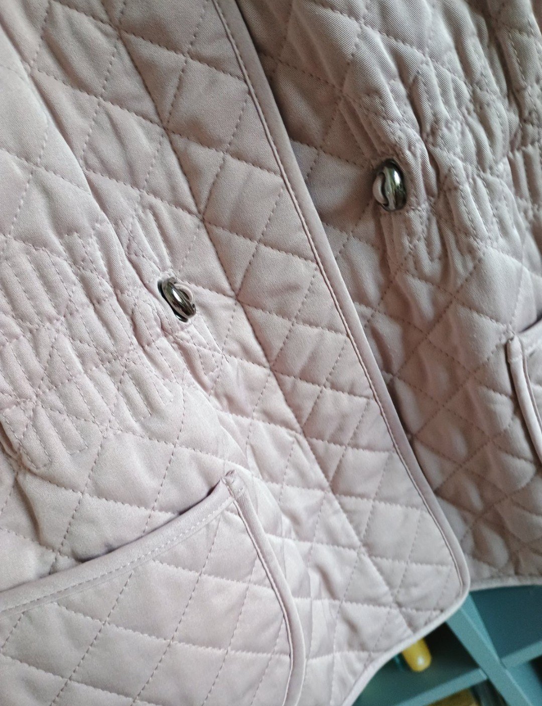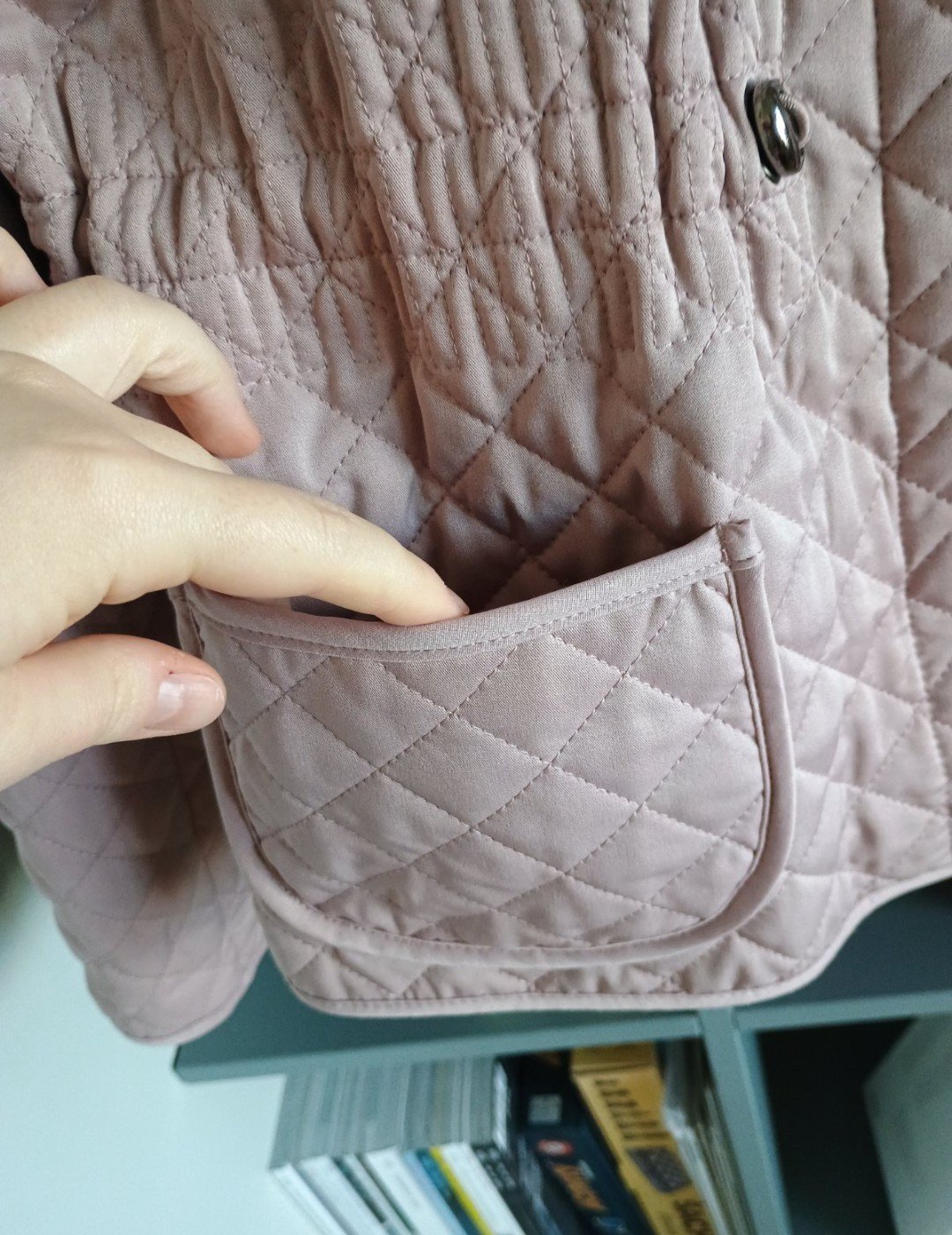 Staroružový prešívaný kabátik kvalitnej britskej značky Hobbs, vo vynikajúcom stave. Kupovaný tu, no vôbec mi nesedí, takže ho musím posunúť ďalej. Farba je matná svetlá staroružová, zapínanie je na cvoky, ktoré sú kryté látkou, rukávy sú raglanového typu, v páse je možnosť zúženia, celkovo je kabátik veľmi kvalitne a pekne ušitý. Veľ. 42 (sedí skôr na L). Rozmery: cez prsia 52 cm, dĺžka 60 cm.