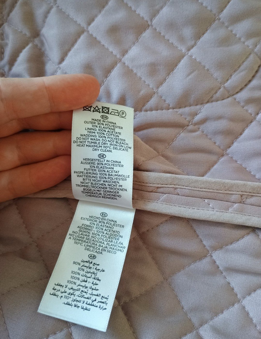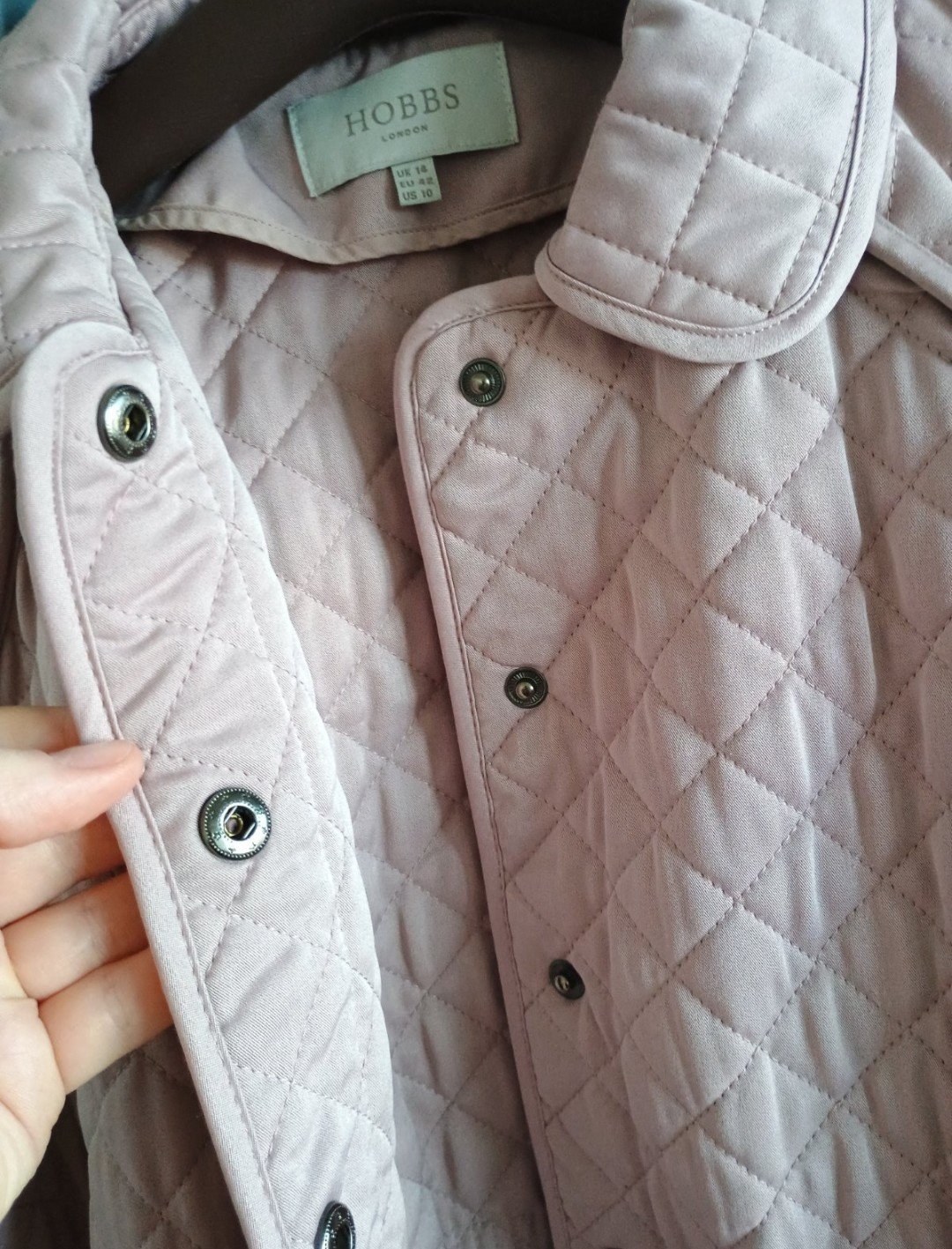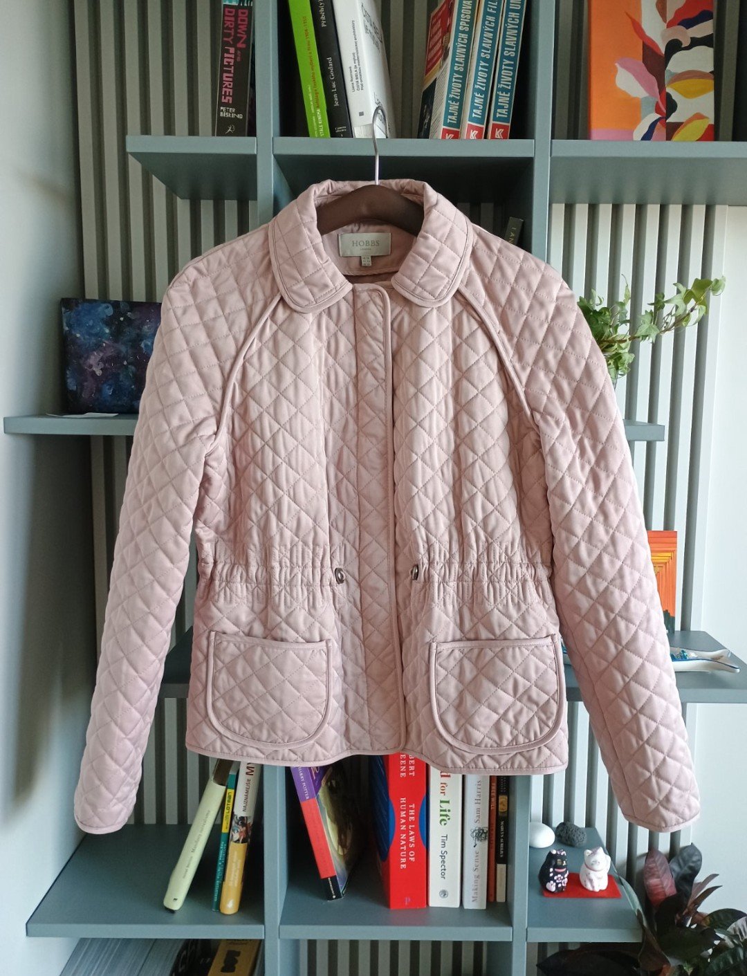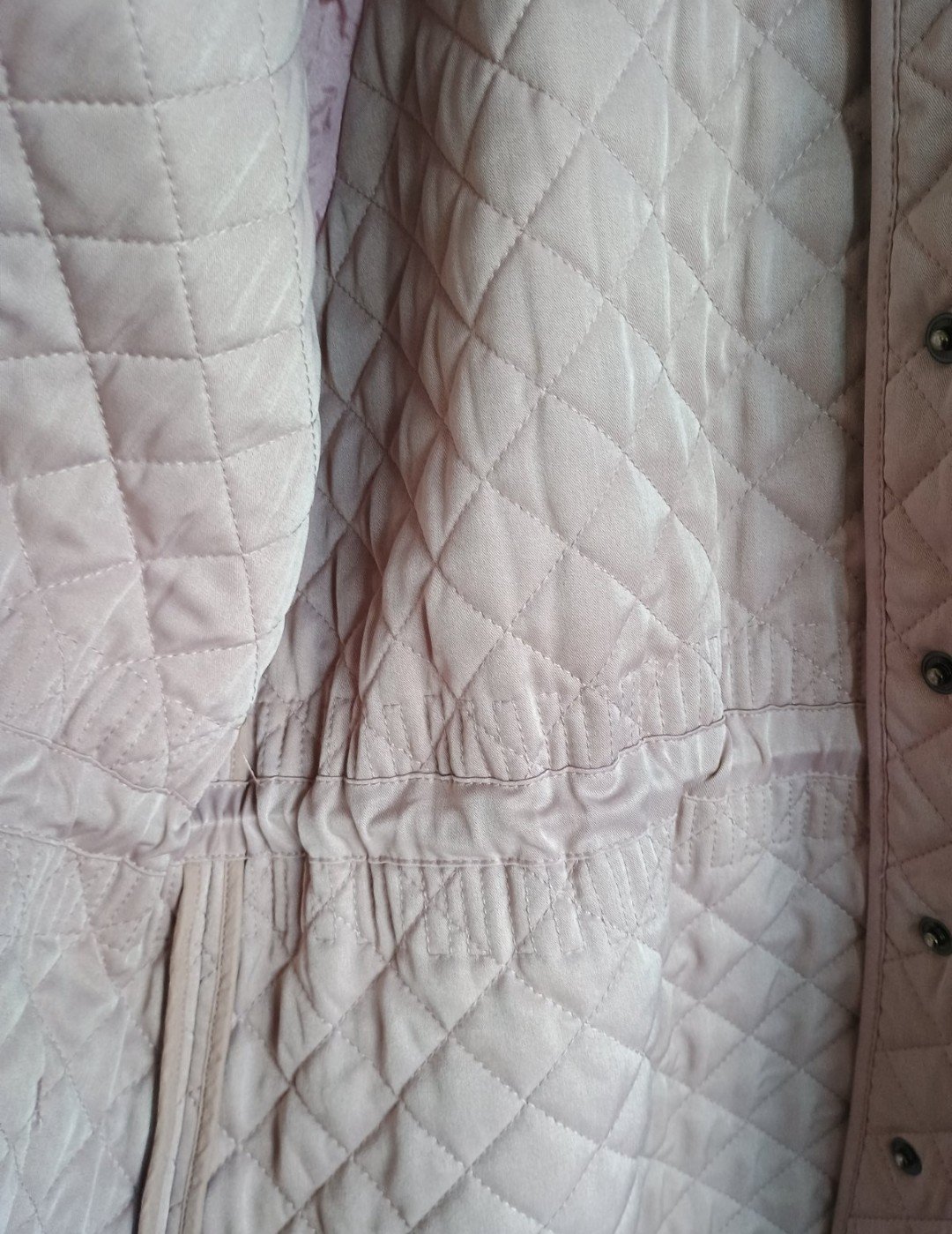 Staroružový prešívaný kabátik kvalitnej britskej značky Hobbs, vo vynikajúcom stave. Kupovaný tu, no vôbec mi nesedí, takže ho musím posunúť ďalej. Farba je matná svetlá staroružová, zapínanie je na cvoky, ktoré sú kryté látkou, rukávy sú raglanového typu, v páse je možnosť zúženia, celkovo je kabátik veľmi kvalitne a pekne ušitý. Veľ. 42 (sedí skôr na L). Rozmery: cez prsia 52 cm, dĺžka 60 cm.