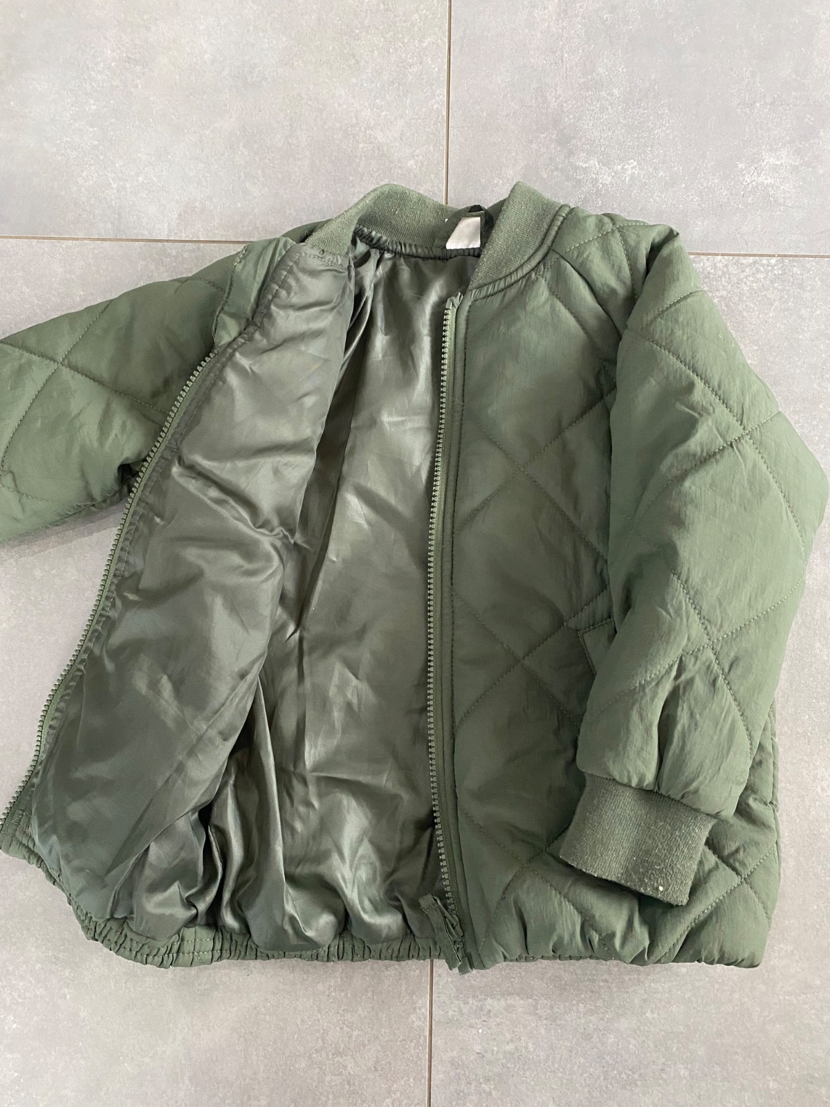 Nosena a zachovala vetrovka .Velkost uz neni vidiet ale podla potreby odmeram .Bez poskodenia ,farba pekna modra.Vhodna aj na miernu zimu.