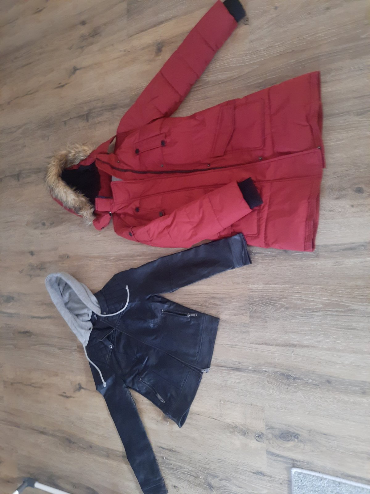 Predám zimnú bundu 12e a koženkovu bundu s teplákovou kapucnou vel..34 za 7e cena spolu 17e v dobrom stave bez poškodenia.