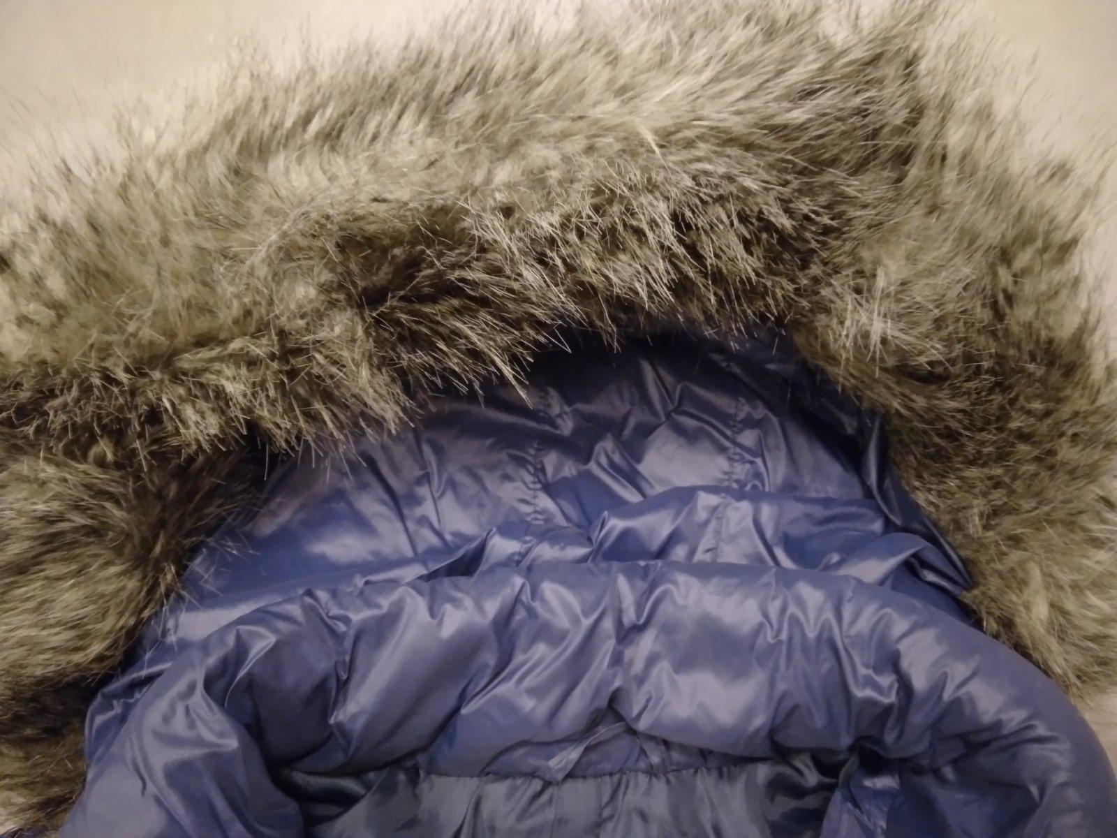 Ako nová, huňata kožušina, odnímateľná kapucňa. Dĺžka 65 cm, šírka 50 cm.