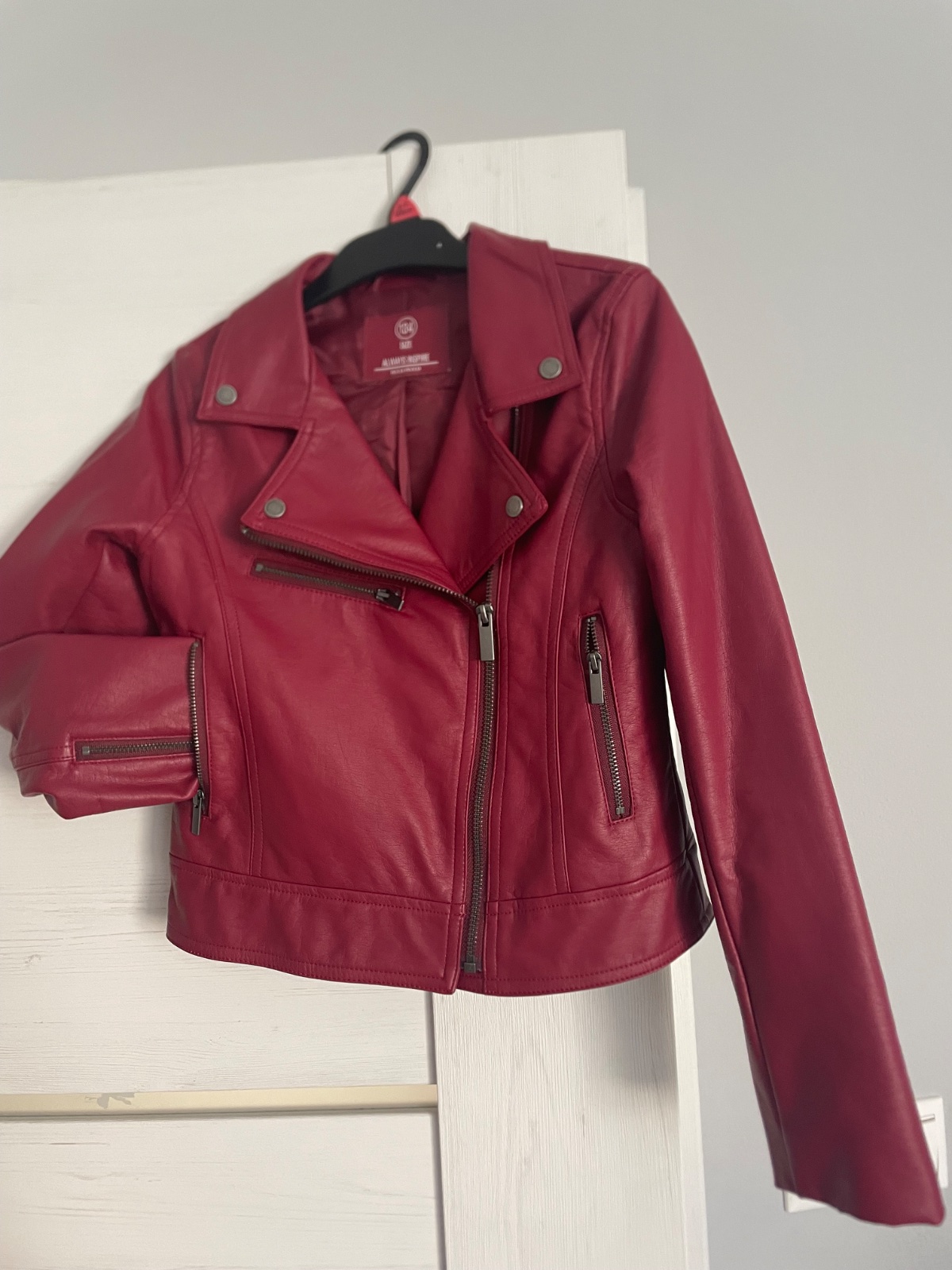 Nosená, no stále super, bez poškodení. Kapucňa sa dá odcvokovať preč. Zapínanie na zips, cvoky. Dĺžka 52cm, dĺžka rukáva od krku 56,5cm, šírka pod pazuchami 35cm.