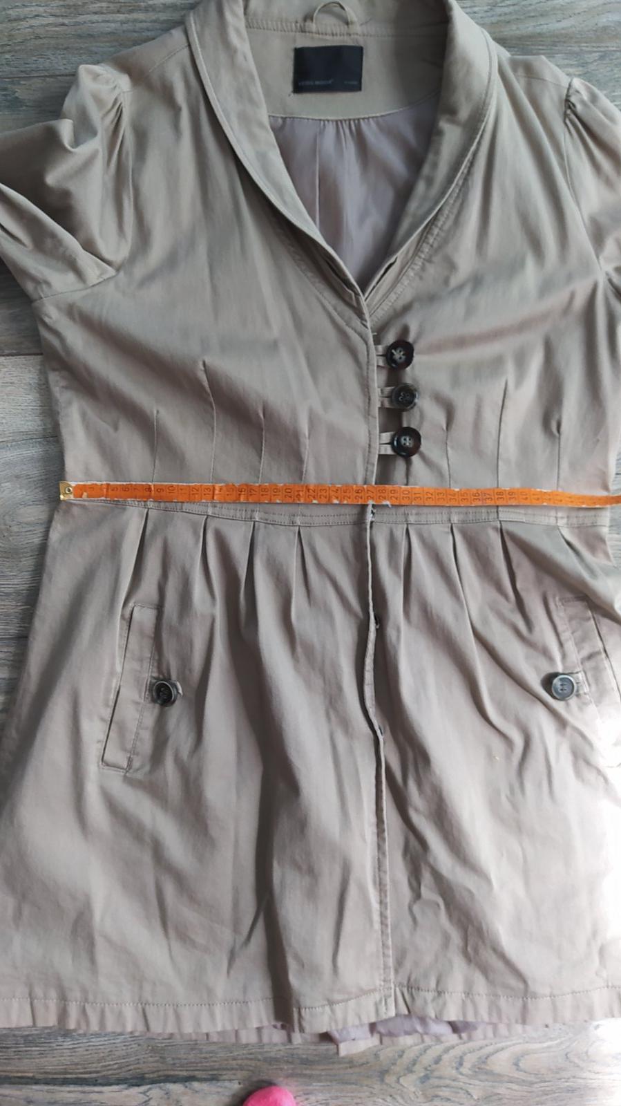 Prechodný podsitý kabátik veľkosť XL, dĺžka 87, rukáv od pleca 65, rozmery pofotene.