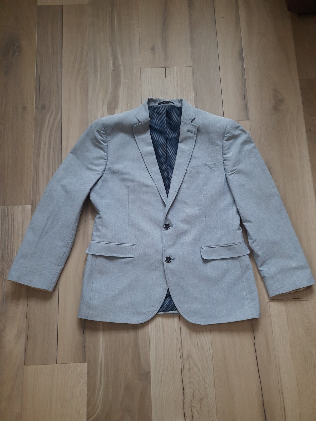 Predám sako. Poškodenia som nenašla. Je ako nové. Môj manžel nenosil pretože sú mu krátke rukávy (výška 180 cm). Nosí M/L a krásne mu sadlo až na tie rukávy. Zrejme na nižšieho muža. Cena už aj s poštovným 10 eur.