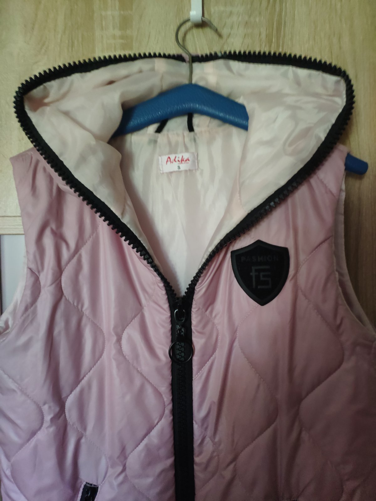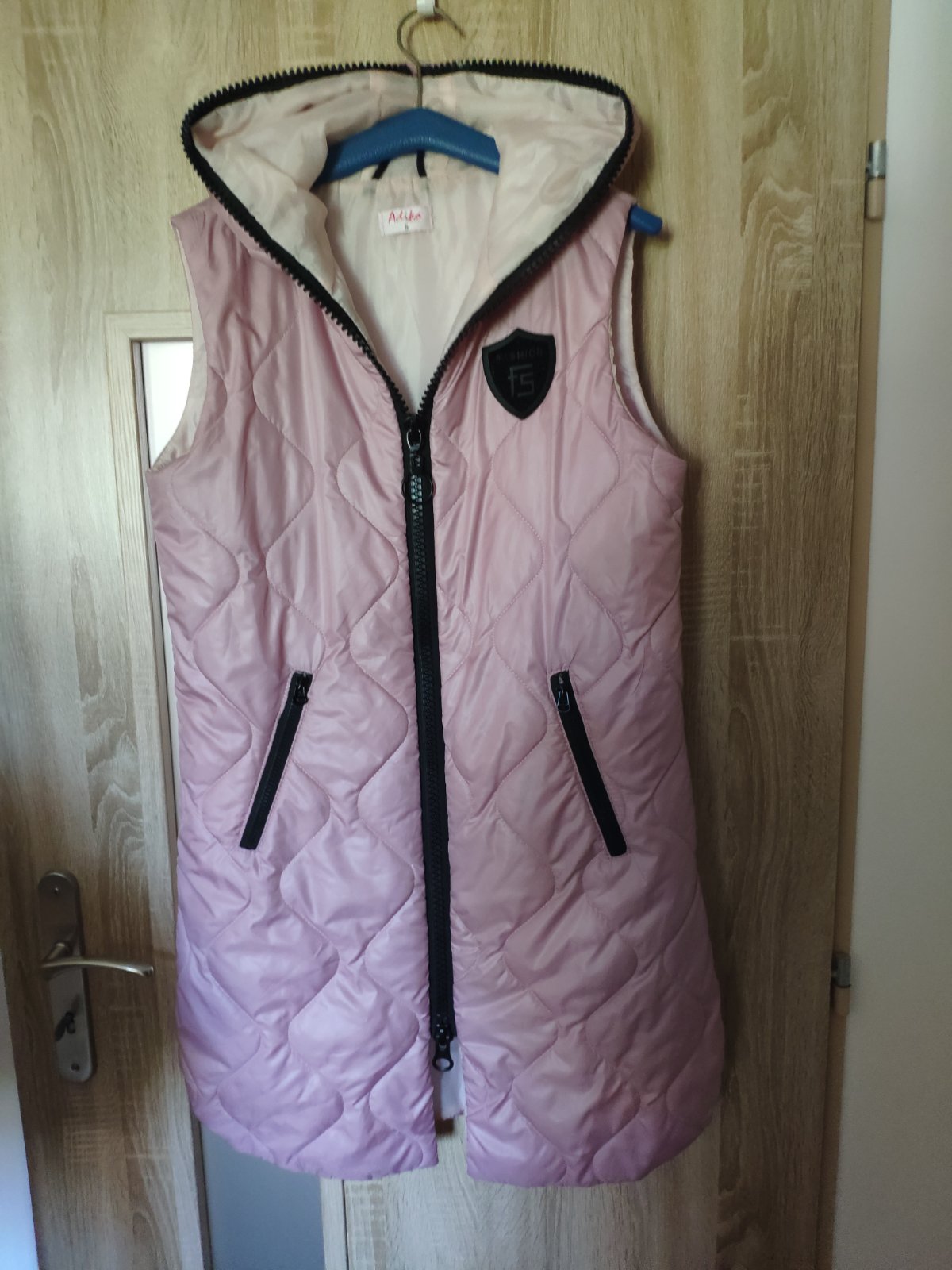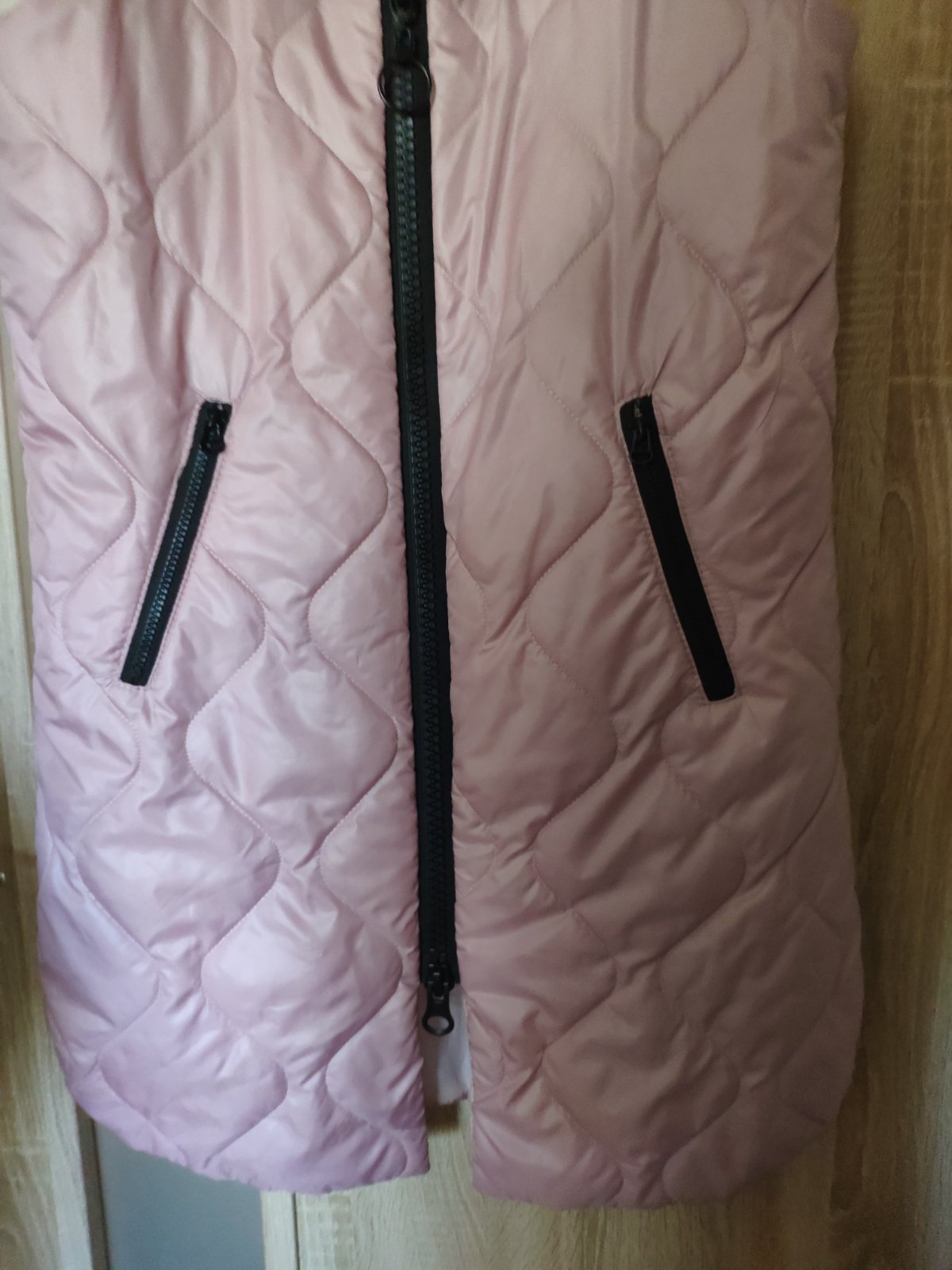 Ruzova,presivana,tepla vesta,obojstranny zips,kvalitna znacky-Shires,vzadu guma,da sa regulovat alebo vytiahnut,nosena.este posluzi