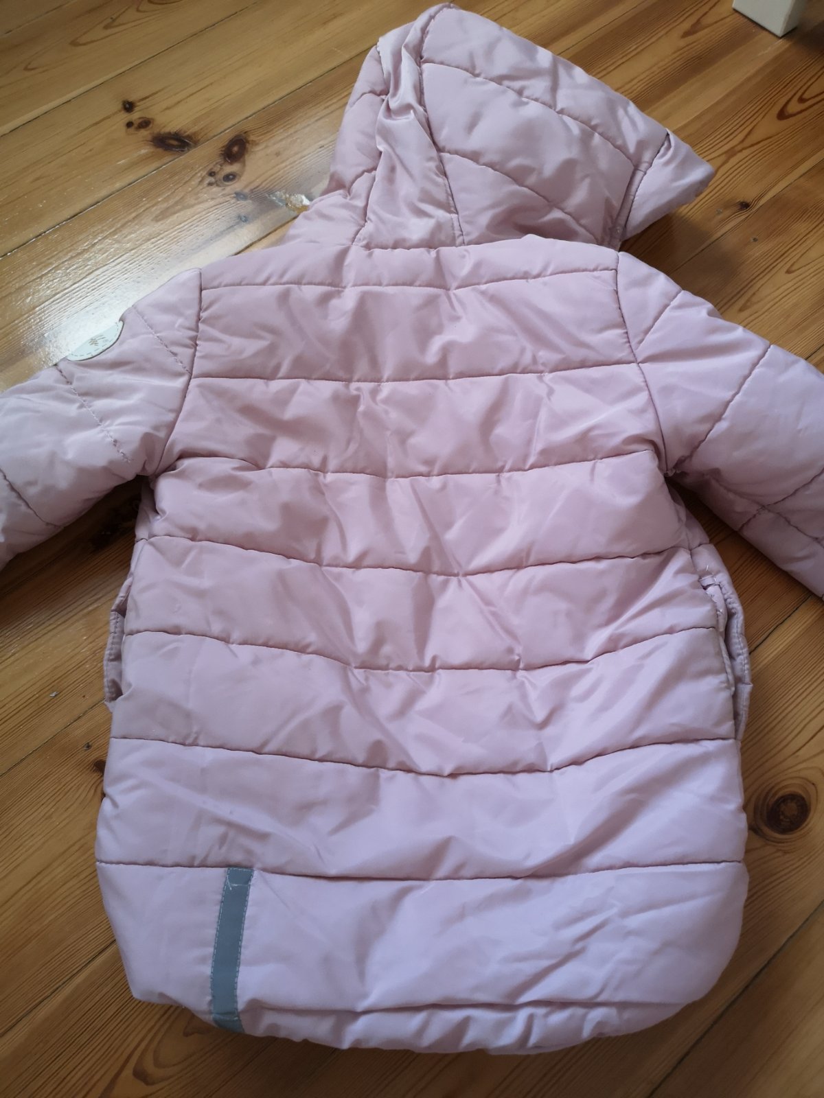 Rukavy som prerabala na kúskoch som dala prec gumu lebo to bolo take úzke ze si to malá nevedela prevliect v skolke ked mala svetrik, na jednom rukáve dierka z vnútra, treba si dobre pozrieť fotky,snažila som sa všetko nafotit, inak je bundicka super