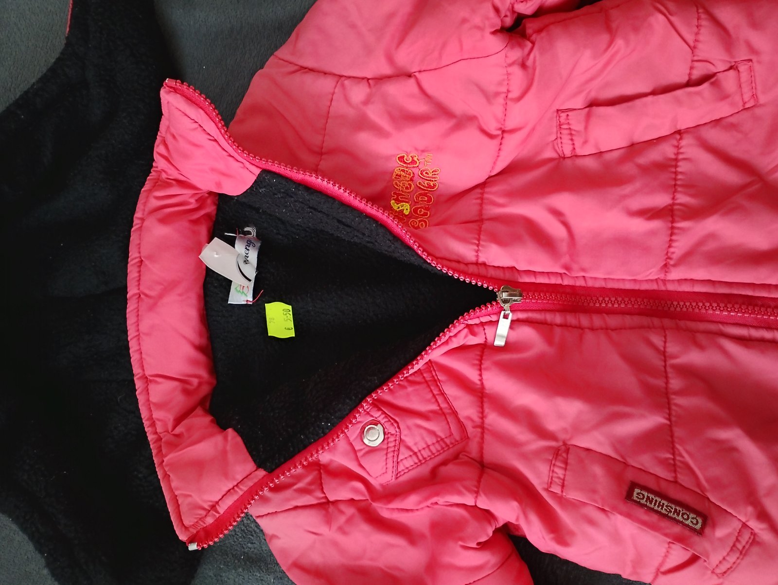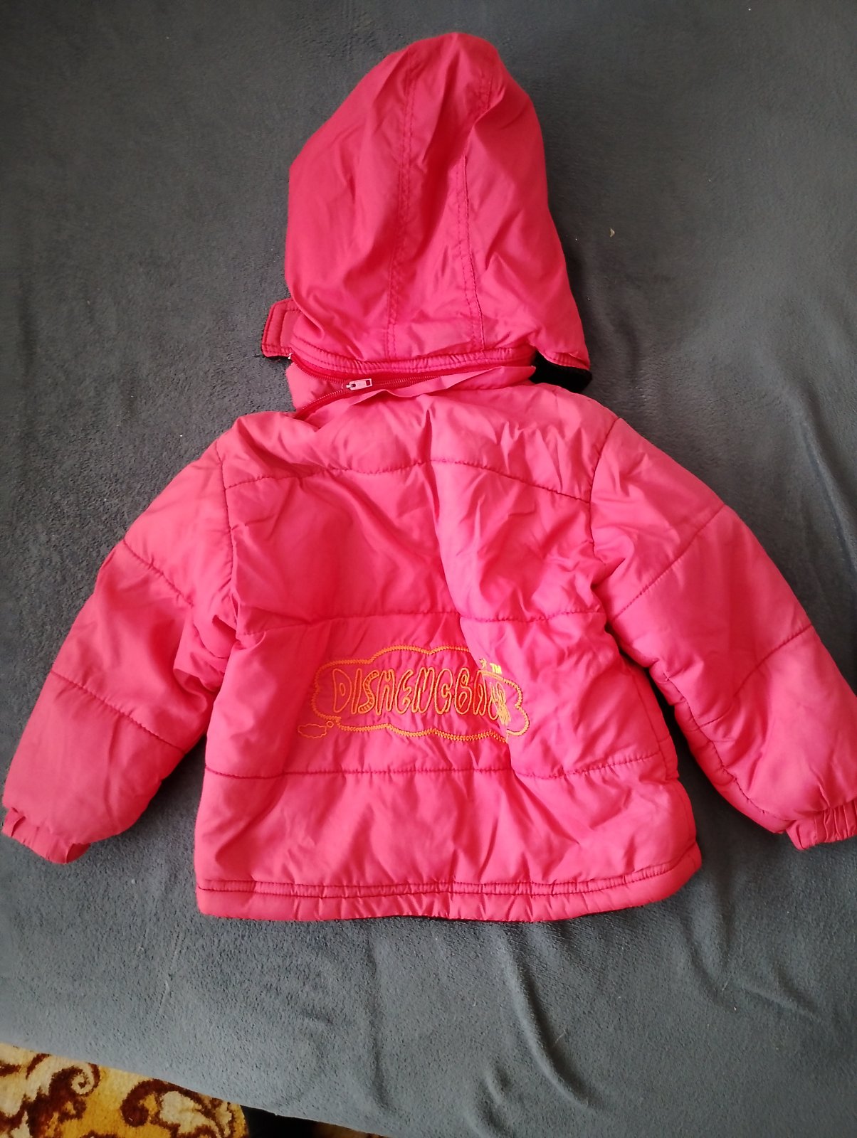 Bunda, nie je však originál podľa mňa. Ale veľmi dobre ušitá, prepracovaná, príjemný materiál. Vnútri flis. Rukávy stiahnuté gumičkou. Kapucňa odopinatelna. Chyby krásy sú, že na bežci je iba krátk...