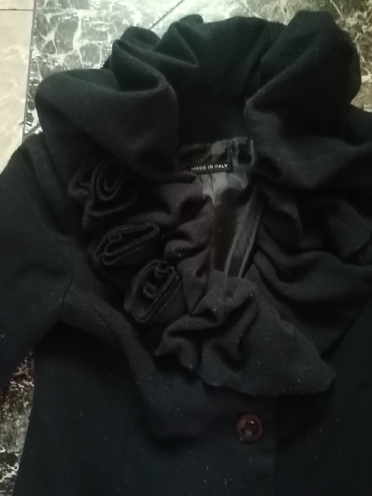 Kabát elegantný mäse in italy. Na golierii su rúže zaujimavy