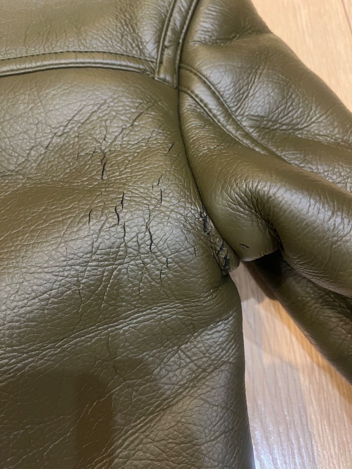 Vzadu pod ramenom trosku popraskana koženka,no nieje to vidno pri noseni
