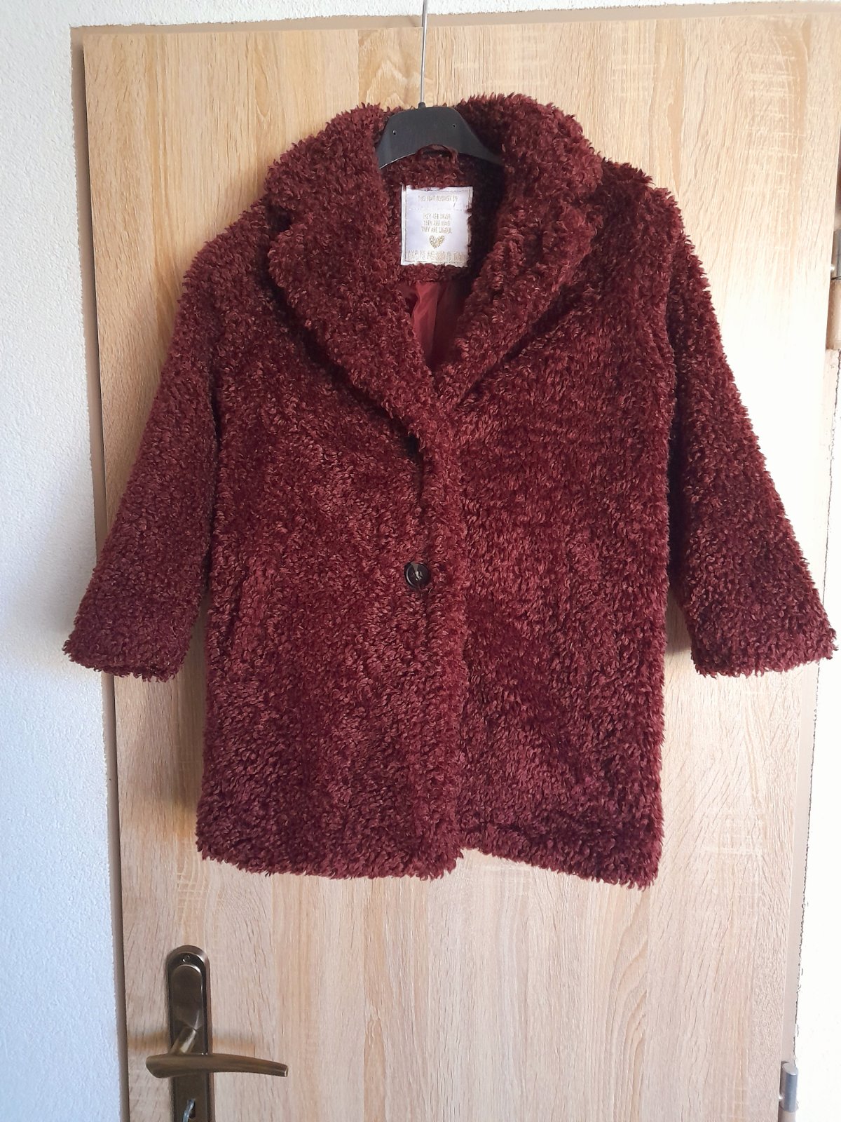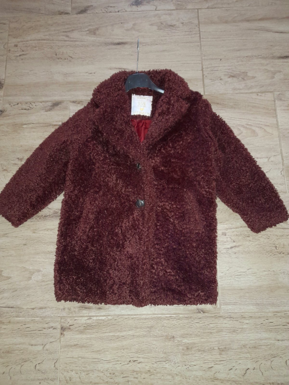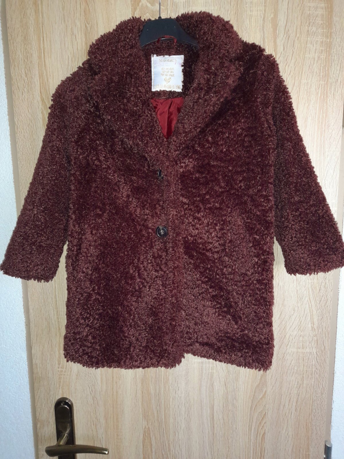 Predám krásny kožuch/ teddy kabát. Noseny v super stave. Farba je taka hnedo/bordová. Veľkosť je písaná na 6 rokov.Sedi tak na veľkosť 122/128.