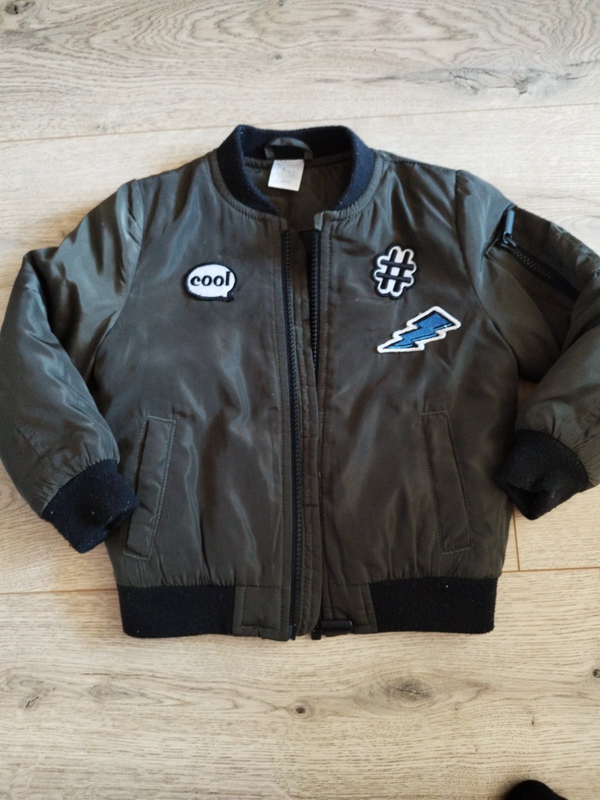Prechodná chlapčenská bundička, zateplena flisom, aj rukávy. Pekný stav. Chyba štítok s veľkosťou. Tipujem tak 86-92.
