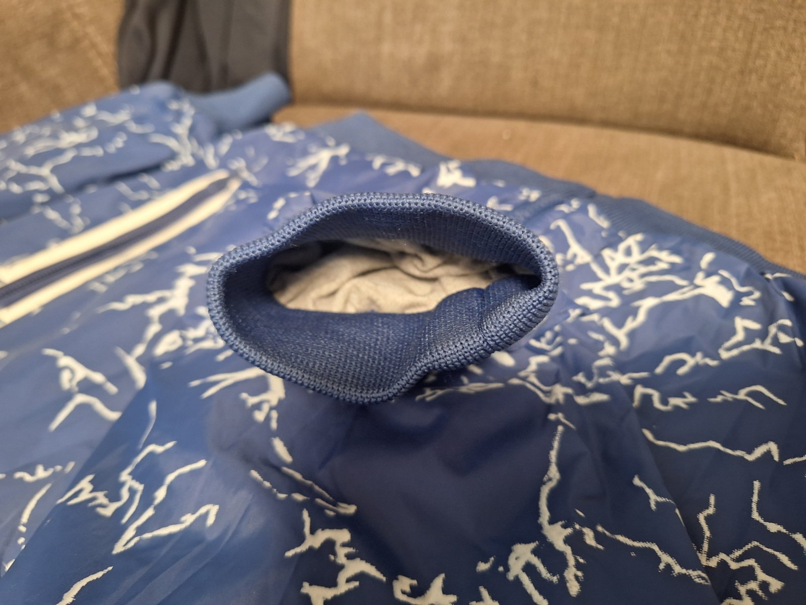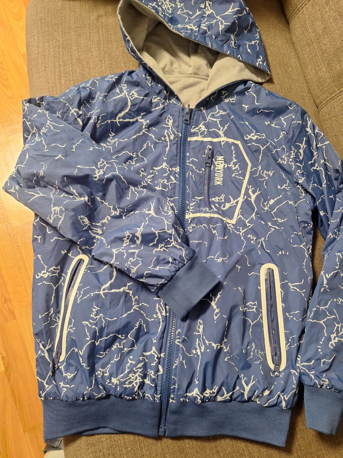 Obojstranná vetrovka ,veľkosť orientacná 152. Z jednej strany šuštákovina, z druhej strany ako sivá mikina. Nenosena, vidiet aj na rukávoch.